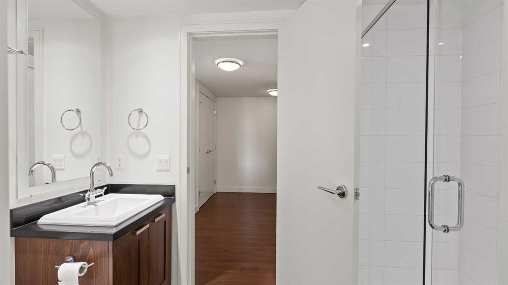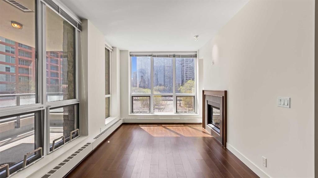 ***Freshly Painted*** Are you an urban professional who walks to work? With a Walk Score of 96, the condos at WATERFRONT are tailored for your lifestyle. This bright, south-west-facing CORNER UNIT in the sought-after 'A' Tower (East) features 2 bedrooms and 2 bathrooms, and is move-in-ready. Modern, upscale finishes include stainless steel appliances with a gas cooktop, integrated fridge, New dishwasher, quartz countertops, a pantry, wide-plank hardwood flooring, soft-close custom cabinetry, a gas fireplace, Grohe plumbing fixtures, and 9-foot ceilings. Enjoy outdoor living on the large, covered balcony equipped with a gas BBQ hookup. Also included are an oversized underground parking stall (P3) and a storage locker on the 3rd floor. WATERFRONT offers exceptional amenities: 24/7 concierge and security, guest suite, owners’ lounge with kitchen and pool table, screening room, fully equipped fitness and yoga studio, hot tub, car wash bay (P4), and secure bike storage. Convenient retail services—including a coffee shop, wine store, and hair salon—are located right on the main level. Plus, you're just minutes from Bow River Pathways and Prince’s Island Park. Explore the Virtual Video Tour on YouTube by searching MLS® # A2272721. The lowest-priced condo in this complex, call to book a private viewing today.
