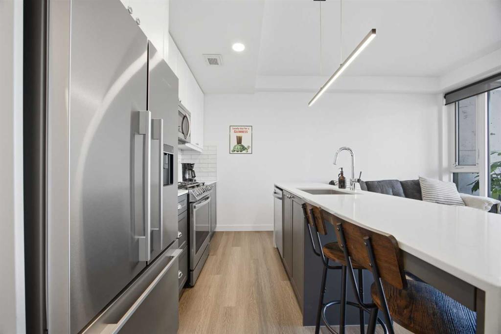 Welcome to your new home in The Annex, one of Kensington’s most desirable concrete buildings and Calgary’s first LEED Gold V4 Multifamily Midrise. Did we mention this building allows short term rentals - a rare and strong investment opportunity. You can keep it as a long term rental, turn it into an Airbnb, or move in and enjoy the inner city lifestyle yourself. What makes this home stand out is the ground floor, street level entrance. It creates a boutique hotel feeling that guests love and offers unmatched convenience with no elevators and no long hallways. It is one of the most desirable and unique layouts in The Annex. Inside, the layout is bright and modern with 9 foot ceilings, floor to ceiling windows, and a clean, open design. The kitchen features quartz countertops, a gas range, sleek cabinetry, and premium Fisher and Paykel stainless steel appliances. The living area is well designed and easy to furnish, creating a comfortable space for relaxing or entertaining. The bedroom is positioned at the back of the unit for privacy and features a large closet. There is also a four piece bathroom and convenient in suite laundry. This property includes titled underground parking and a titled storage locker, which adds excellent value in this vibrant inner city community. Residents also enjoy access to an outstanding rooftop patio with panoramic downtown views, BBQ stations, fire features, lounge seating, a community garden, and a dog run. It is one of the best shared spaces in the area. Living in Kensington means everything is at your doorstep. The Bow River pathways are also just minutes away. This ground floor unit offers a rare blend of style, convenience, and investment potential in one of Calgary’s most walkable neighbourhoods. It is an excellent opportunity for a first time buyer, investor, or anyone looking for easy inner city living.