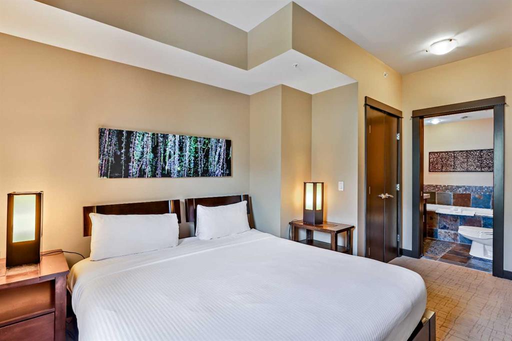Silver Creek Lodge delivers a boutique mountain experience with an impressive lineup of amenities: two outdoor hot tubs, a soothing sauna, fitness centre, private spa, and an on-site restaurant, all just a short walk from Main Street, cafes, shops, and miles of scenic pathways. Inside, the suite offers a thoughtful and spacious layout with two bedrooms, each paired with its own private ensuite, allowing the unit to comfortably sleep six when using the pull-out sofa. Both bedrooms enjoy their own stunning mountain views, creating a tranquil backdrop from the moment you wake. A fully equipped kitchen makes it easy to prepare meals after a day of adventure, while the inviting living room—complete with a cozy gas fireplace—sets the stage for warm, relaxing evenings. A mountain modern zen vibe with bamboo and slate floors and granite courntertops. The true showpiece, is the expansive penthouse balcony. Perched above the forest canopy and facing the dramatic Fairholme Mountain Range, this outdoor sanctuary offers incredible morning light, peaceful privacy, and unforgettable sunsets. Whether you're sipping coffee, sharing a glass of wine, or simply taking in the stillness of the peaks, this is a space that elevates every moment. A luxurious mountain escape with unbeatable views. PRICE GST INCLUSIVE - TALK TO YOUR TAX PROFESSIONAL ON HOW TO DEFER.