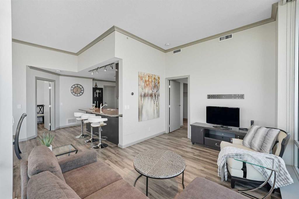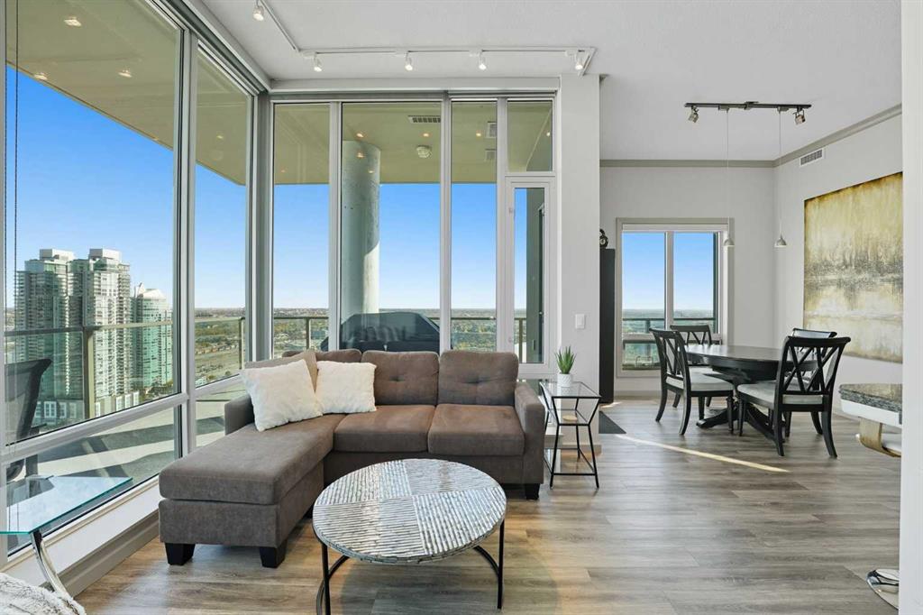Welcome to Vetro, one of Calgary’s most sought-after high-rise condominiums, ideally located in the heart of the Beltline. Perched on the 32nd floor, this stunning 2-bedroom, 2-bathroom corner unit offers nearly 965 sq. ft. of modern living space with spectacular south-facing city and mountain views through floor-to-ceiling windows.