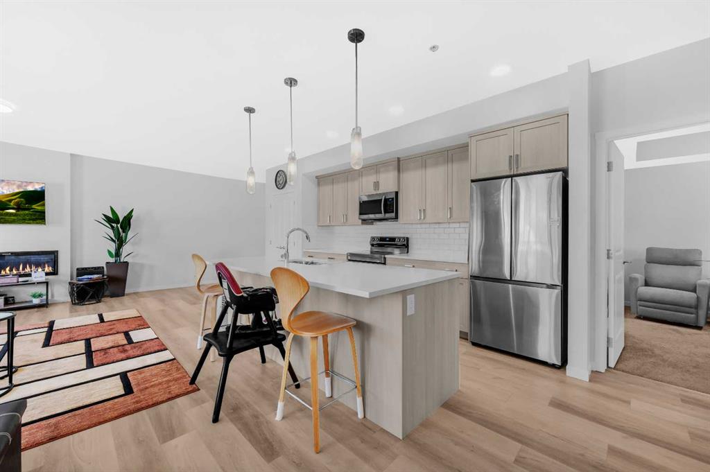 MODERN CORNER UNIT | 2 BED + 2 BATH | FULL-WIDTH BALCONY | UNDERGROUND PARKING I BUILT BY CEDARGLEN HUGE PRICE DECREASE FOR QUICK SALE Discover this bright, beautifully upgraded corner apartment unit offering the perfect blend of modern design, functionality, and unbeatable location. Built by renowned builder CEDARGLEN, this spacious 2-bedroom, 2-bathroom home delivers exceptional value for homeowners and investors alike. The thoughtfully designed floorplan features a HUGE OPEN-CONCEPT LIVING ROOM filled with natural light, creating a warm and inviting space to relax or entertain. Cozy up by the ELECTRIC FIREPLACE, or step out onto the FULL-WIDTH BALCONY—a rare and valuable extension of your living space—perfect for morning coffee, evening sunsets, or enjoying fresh air all year round. At the heart of the home is a SLEEK, MODERN KITCHEN equipped with STAINLESS STEEL APPLIANCES, QUARTZ COUNTERTOPS, and AMPLE CABINETRY. The DEDICATED DINING AREA comfortably accommodates family meals or intimate dinner parties, seamlessly connecting to the living space for a truly open feel. The PRIMARY BEDROOM SUITE offers privacy and comfort with a LARGE WALK-THROUGH CLOSET and a LUXURIOUS ENSUITE BATHROOM, featuring a DOUBLE VANITY, HIGH-END FIXTURES, and CONTEMPORARY FINISHES. The spacious second bedroom is ideal for guests, a roommate, or a home office setup, with easy access to the second full bathroom. Additional standout features include DURABLE LUXURY VINYL PLANK (LVP) FLOORING throughout, IN-UNIT LAUNDRY, ROUGH-IN FOR AIR CONDITIONING, and DEDICATED IN-SUITE STORAGE, adding convenience and functionality to everyday living. Located in a well-managed, modern building, this home places you within minutes of all key amenities: 1 MIN TO NO FRILLS & MCDONALD’S 2 MINS TO FRITOU CHICKEN 4 MINS TO THE FIRE STATION 5 MINS TO FRESHCO 5 MINS TO ELEMENTARY, MIDDLE & HIGH SCHOOLS 6 MINS TO SAVE-ON-FOODS Whether you’re a first-time buyer, downsizer, or investor looking for a high-demand rental property, this unit checks all the boxes: LOCATION, LAYOUT, LUXURY, AND LIFESTYLE. Don’t miss your chance to own a STYLISH, LOW-MAINTENANCE, AND MOVE-IN READY APARTMENT in one of the city’s most convenient and connected communities.