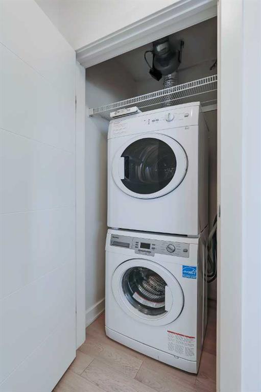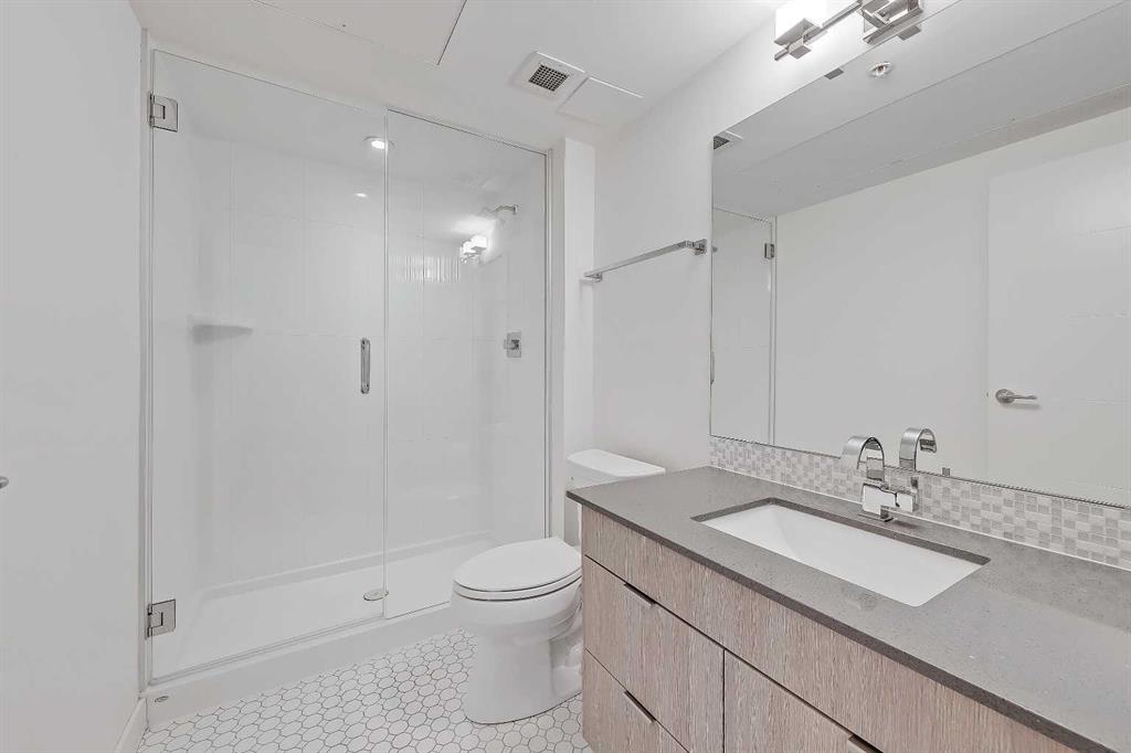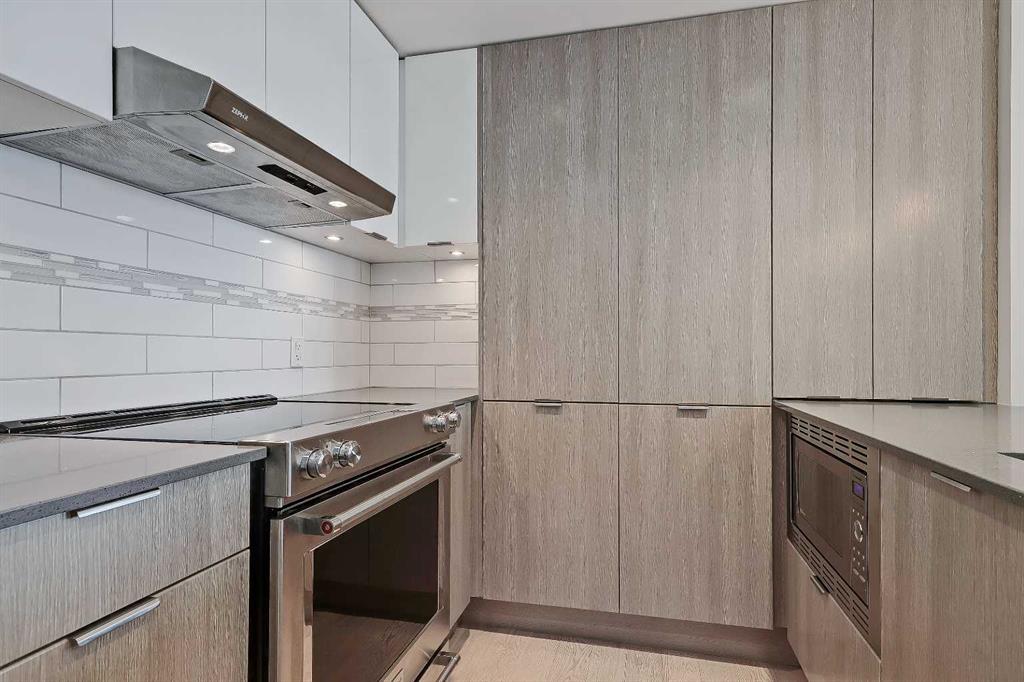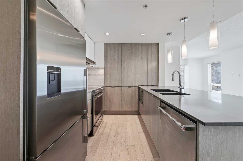 *VISIT MULTIMEDIA LINK FOR FULL DETAILS, INCLUDING IMMERSIVE 3D TOUR & FLOORPLANS!* Welcome to VOGUE! SOUTHEAST-facing 2-bed, 2-bath condo in upscale VOGUE w/ stunning PANORAMIC CITY SKYLINE VIEWS from the 32nd floor! Sun-drenched & open concept, this bright unit is filled with natural light & has engineered hardwood flooring in the main areas. Two-tone cabinets w/ modern hardware & under cabinet lighting, quartz counters, subway tile backsplash, dual basin undermount S/S sink, & S/S appliances, including a built-in Panasonic microwave, Kitchenaid stove w/ flat cooktop & dishwasher, & a Fisher Paykel fridge can be found in the open kitchen. The open main living area also features painted ceilings, floor-to-ceiling windows, & a covered balcony w/ gas line for a BBQ & panoramic views of downtown Calgary. Flanked bedrooms offer extra privacy. Primary suite features plush carpet, large windows w/ panoramic views, a generous walk-in closet, & a 4-pc ensuite w/ hexagon tile floors, modern vanity, quartz counter, undermount sink w/ modern faucet, tile backsplash, & fully tiled tub/shower. The 2nd bedroom also has plush carpet, a generous closet, & large windows w/ panoramic views. The main 3-pc bath features hexagon tile floors, modern vanity, quartz counter, undermount sink w/ modern faucet, & oversized glass shower w/ full height tile. Complete w/ in-suite laundry, a titled indoor parking stall in the heated parkade, & a storage locker. VOGUE is a high-end building w/ a ton of amenities, including central A/C, an elegant formal lobby, full-time concierge, gym, billiards, large party room w/ kitchen, yoga studio, 36th floor Sky Lounge, & multiple rooftop terraces. Surrounded by parks, transit, the LRT, shopping & more, & within walking distance to the downtown core & all Kensington shops & services – this location offers the best urban lifestyle in the Downtown Commercial Core.
