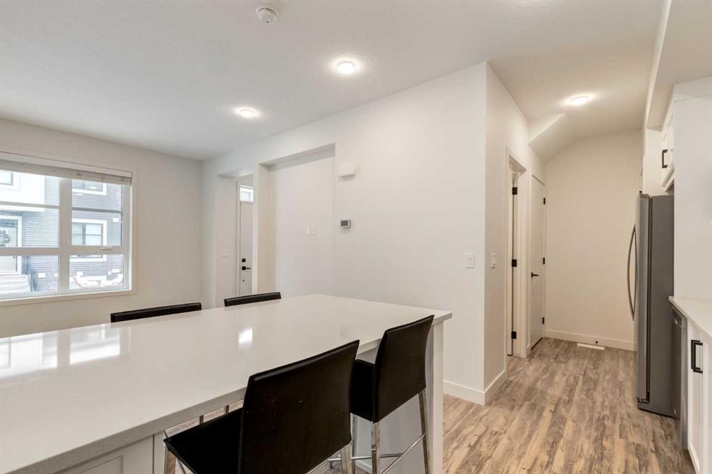 Luxury and refined styling define this beautifully upgraded townhouse, ideally located in the upscale and sought-after community of Walden. From the moment you arrive, the landscaped frontage and spacious concrete patio create an inviting outdoor space—perfect for relaxing, BBQing, or entertaining friends. This unit is privately positioned within the complex, tucked away from street traffic and noise for added peace and comfort. Inside, you’ll find nearly 1,300 sq. ft. of thoughtfully designed living space featuring 3 bedrooms, 3.5 bathrooms, and two dedicated parking stalls. The main level showcases 9 ft ceilings and luxury vinyl plank flooring that continues throughout both levels, creating a cohesive and modern feel. The gourmet kitchen is a standout, offering quartz countertops, a chimney-style hood fan, upgraded stainless steel appliances including a gas stove, and premium finishing touches for both style and functionality. Upstairs features 2 bedroom and 2 full bathrooms, while the fully finished basement adds exceptional versatility with a third bedroom, a full bathroom, convenient laundry, and a generous walk-in closet with excellent storage capacity. Pride of ownership is evident throughout, and the well-managed complex benefits from very low condo fees—making this home not only stunning but practical. With public transit, shopping, parks, and easy access to Stoney Trail and Deerfoot Trail, commuting and daily convenience are effortless. This move-in ready home offers the perfect blend of luxury, comfort, and location in one of Calgary’s most desirable newer communities.