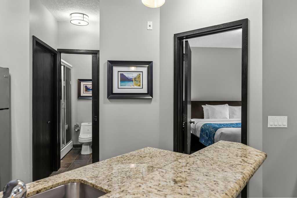This inviting 1 bedroom, 1 bath condo offers a smart 528 sq ft layout filled with light and unforgettable mountain views of the iconic Three Sisters. Located in Grande Resort, you’ll love the effortless walk to downtown shops, restaurants, and the river, plus easy access to nearby biking and walking trails. After a day of adventure, unwind in the indoor/outdoor hot tub, splash around in the indoor pool with waterslide, or let the little ones enjoy the dedicated kiddie pool. With an onsite restaurant, spa, and fitness room, the resort delivers a true getaway experience for both owners and guests. The cozy gas fireplace creates the perfect place to relax, while the covered deck is ideal for soaking in sunset views over the Three Sisters. A rare bonus, this 1 bedroom unit shares a common foyer with its adjoining 2 bedroom neighbor (also being listed), offering the unique opportunity to combine both into a 3 bedroom, 3 bath retreat. Zoned as a Tourist Home, this property provides exceptional flexibility for short- or long-term rentals—making it a versatile mountain escape and a smart investment all in one.