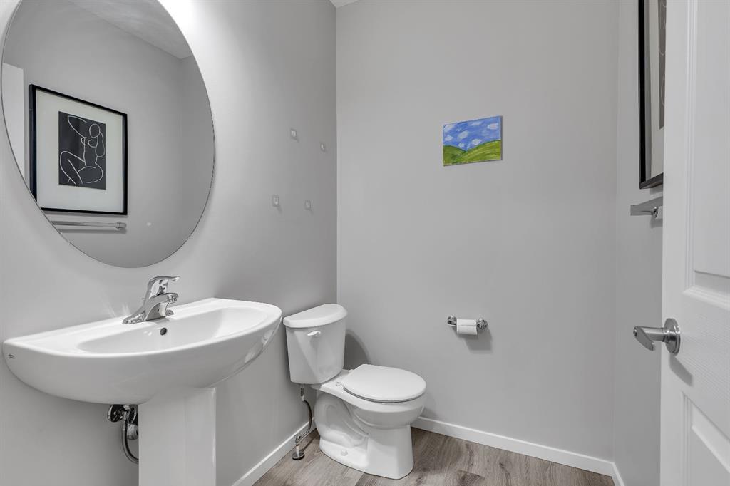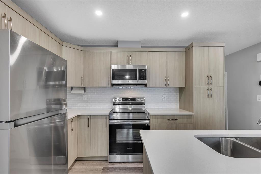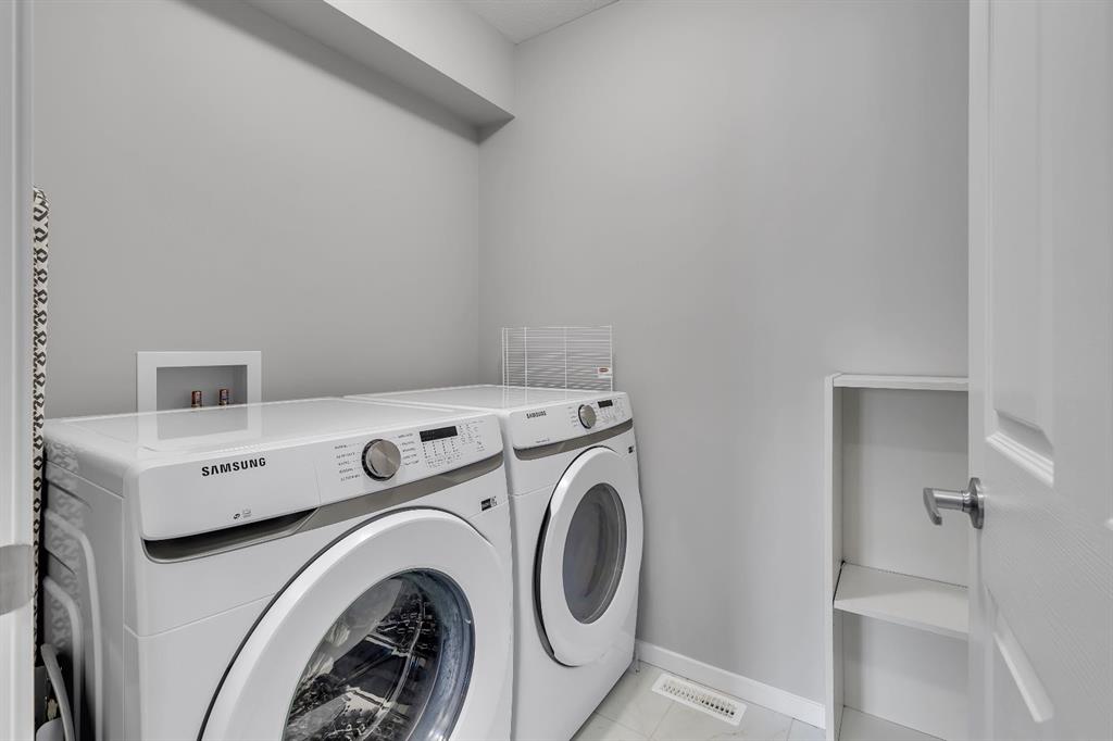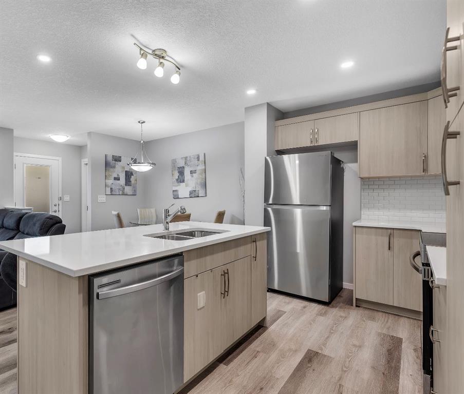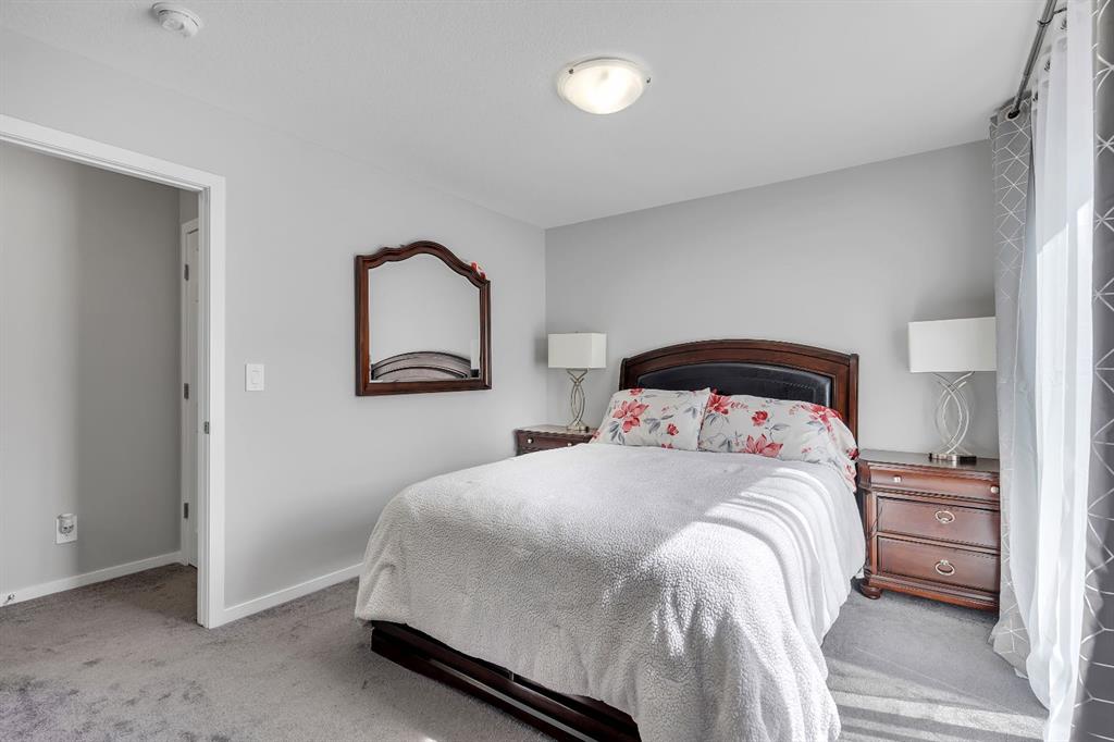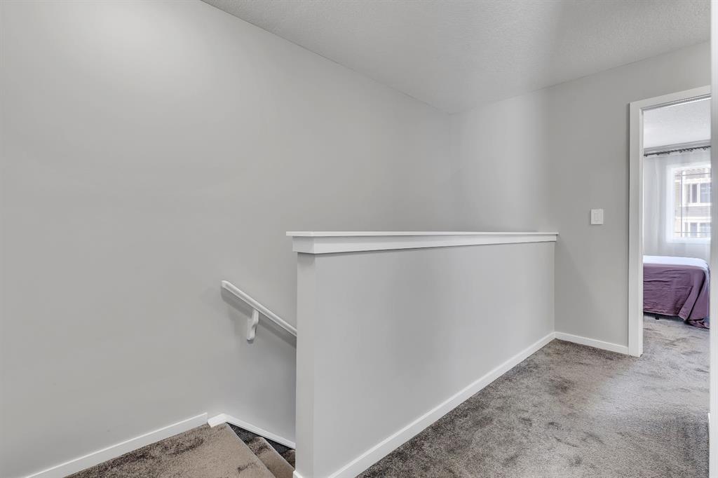 LOWEST-PRICED TOWNHOME IN AIRDRIE WITH 3 BEDS | 2.5 BATHS | DOUBLE CAR GARAGE | NO CONDO FEES – This 2022-built townhome in Southwinds, Airdrie SW offers the ideal combination of space, functionality, and location—with no condo fees and thoughtful design throughout. The home is east-facing, bringing in beautiful morning light through the front windows, while the west-facing private balcony off the primary bedroom lets you enjoy evening sunsets. The main floor features a bright living room at the front, a dining space, and a modern kitchen with quartz countertops, stainless steel appliances, a central island, and plenty of cabinet space. You’ll also find a 2-piece bathroom, a mudroom with built-in shelving, and a front entry closet for extra storage. Upstairs offers three generously sized bedrooms, including a primary suite with a huge walk-in closet, 4-piece ensuite, and direct access to the balcony. Two additional bedrooms, another full 4-piece bathroom, and convenient upper-level laundry complete the layout. The unfinished basement includes plumbing rough-ins for future development. A double attached garage with paved rear lane access, a welcoming front porch, and a family-friendly location close to Windsong Heights School, Chinook Winds Regional Park, playgrounds, and shopping make this a fantastic opportunity in one of Airdrie’s desirable newer communities.