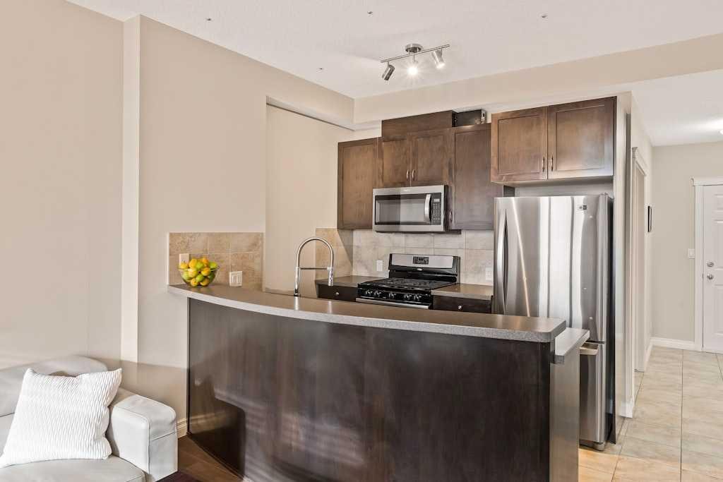 Inside, this spacious 800+ sq. ft. unit offers an ideal 1-bedroom + DEN floorplan. There is beautiful hardwood flooring throughout the main areas, and the kitchen impresses with stainless steel appliances, an upgraded GAS RANGE, and a warm, timeless colour palette with excellent cabinet space.