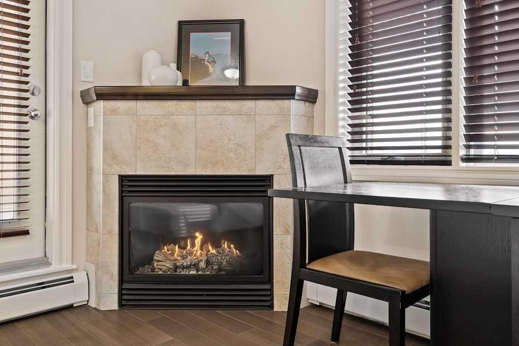 The open-concept living and dining areas feel bright and inviting thanks to the large windows, and the corner GAS FIREPLACE creates a cozy atmosphere for winter evenings. Step onto the SOUTH-FACING balcony overlooking the GOLF COURSE—private, peaceful, and wonderful to enjoy throughout the year.
