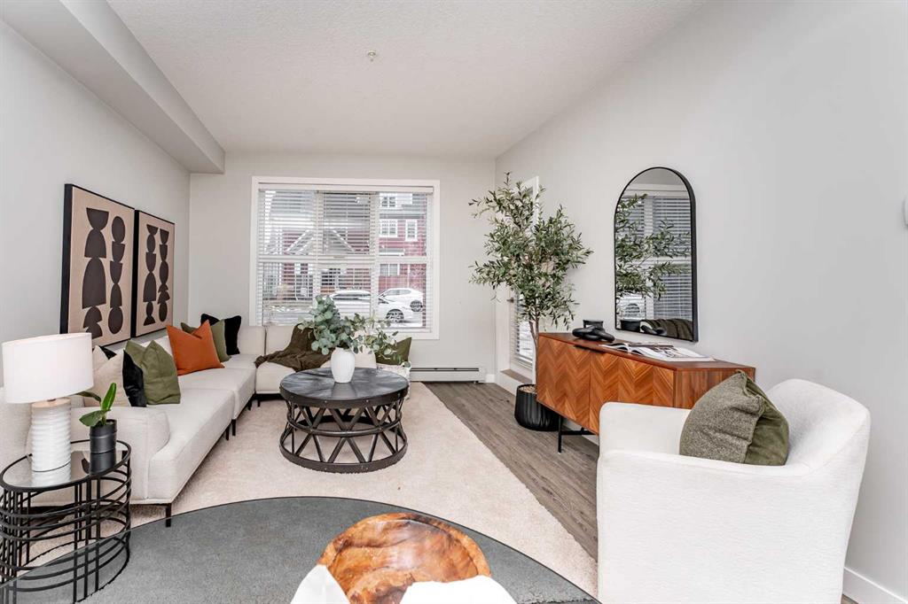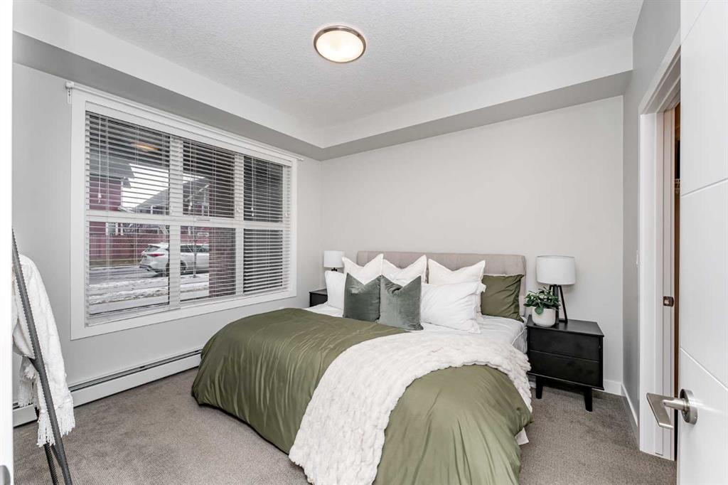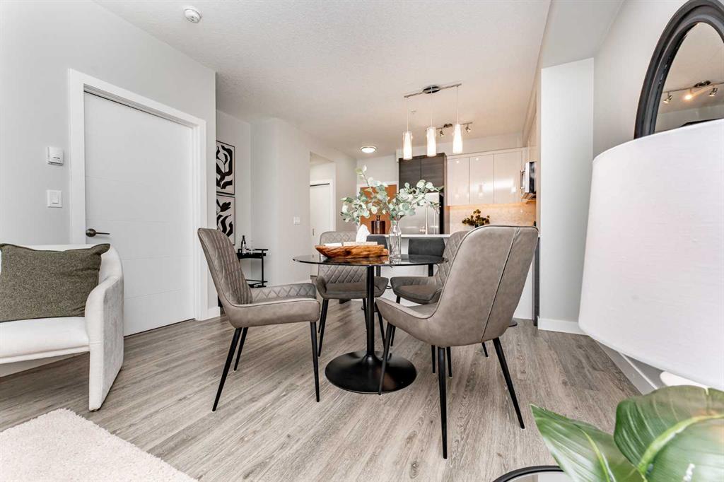BUILDER SALE! Looking for upgrades in a spec unit? This might be the one. Welcome to the Axess building, located in the heart of the historic Currie Barracks community! This beautifully upgraded 1-bedroom unit features soaring 9-foot ceilings. Step inside to find luxury vinyl plank flooring and an abundance of natural light streaming through oversized windows. The stylish kitchen showcases a modern blend of crisp white and dark cabinetry, upgraded stainless steel appliances including a gas stove, quartz countertops, and a designer tile backsplash. An open counter connects seamlessly to the dining area, perfect for entertaining. The spacious living room leads to a top-floor balcony with a gas BBQ line and unobstructed southern views—the perfect place to relax and enjoy breathtaking sunsets. The generously sized primary bedroom features a walk-through closet with direct access to the elegant 4-piece bathroom, complete with tile flooring, quartz countertops, and a soaker tub. Just off the kitchen is a versatile nook—ideal for extra storage or a small home office setup. Additional highlights include in-suite laundry, underground parking with a car wash, and a private storage locker located directly in front of your parking stall. All this in a prime location—steps from Mount Royal University, walking paths, parks, shopping, and with easy access via Crowchild Trail to Marda Loop and downtown Calgary. A truly exceptional opportunity to own in one of Calgary’s most desirable communities.
