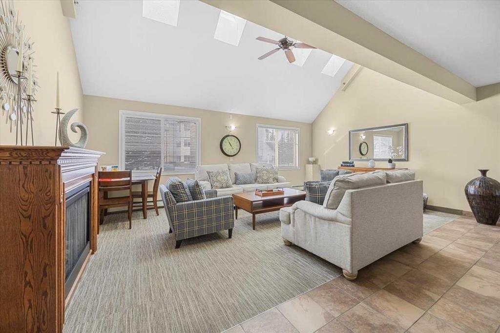 Welcome to Calvanna Village, a highly desirable 55+ community in the heart of Okotoks—perfect for those seeking a relaxed, low-maintenance lifestyle with a strong sense of community. This bright, south-facing one-bedroom condo is sure to impress! The spacious living and dining area is perfect for entertaining or enjoying quiet evenings, while large windows flood the home with natural light. The separate kitchen offers plenty of cabinet and counter space, and the convenience of in the suite laundry makes everyday living easy. The versatile Den is ideal for a home office, hobbies, or storage. Step out onto your private balcony with gas hookup—perfect for summer BBQs and soaking up the sunshine. Enjoy the peace of mind of secure underground parking with extra storage, plus there is lots of outdoor parking for guests. The clubhouse is a true highlight, featuring a social room, games room with pool tables, library, and exercise equipment—ideal for staying active and connecting with neighbours. Excellent location - walk to shopping, dining, and essential services. This well-managed complex offers everything you need right at your doorstep. Quick possession is available—come see for yourself why this could be your next home!