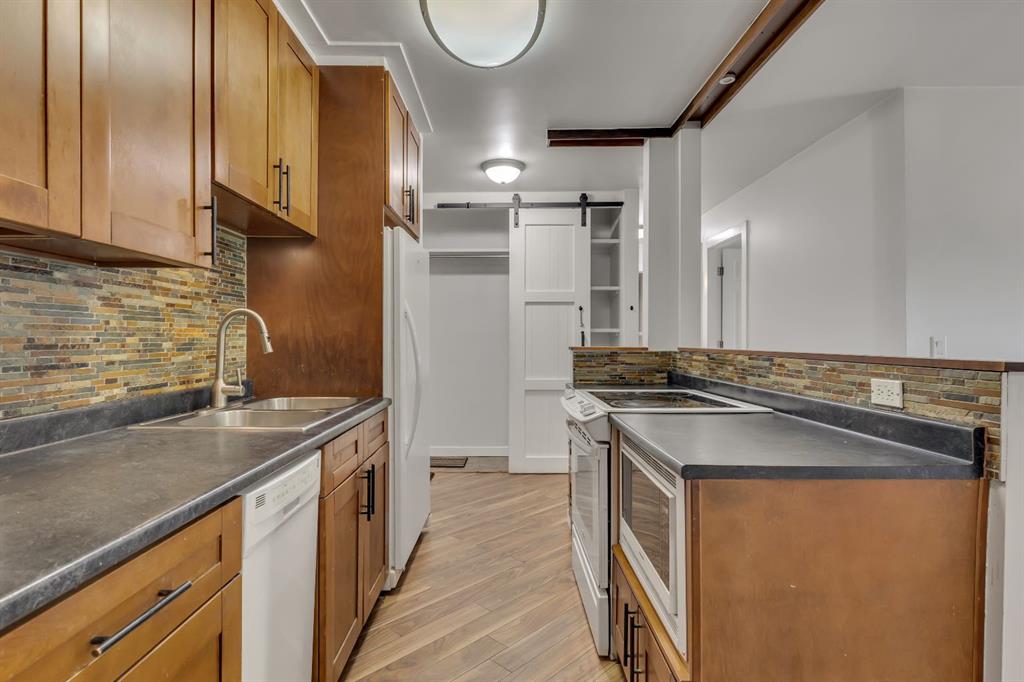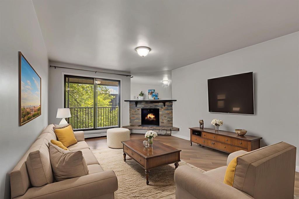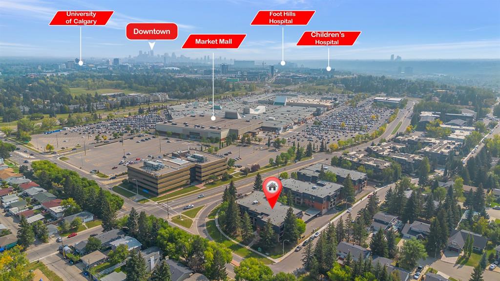 Welcome to Varsity Villas! Located directly across from Market Mall, This TOP FLOOR, SOUTH FACING Unit has all you need! The open concept living room, dining room and kitchen take full advantage of the natural light. The previous owner had renovated in 2022 with such updates as new laminate flooring, new kitchen cabinets, trim, doors, bathtub and tile. This unit features a large primary bedroom, a good sized secondary bedroom and a 4 piece bathroom with IN SUITE LAUNDRY. The living room features a corner gas fireplace with mantle as a focal point and just outside to the large balcony which overlooks the courtyard. The windows were replaced in the last few years and the unit is on the quiet side of the complex (south side). Believe it or not, there is even central vacuum in this unit. The in suite storage room is a very good size and has a convenient chest freezer included. If you seek additional storage, it can also be available at $ 40.00 a month for a large storage and $ 20.00 a month for a smaller one. One just has to contact the board. The complex is 25 + age restricted. No pets allowed. Parking is assigned to the new owner on a first come, first served basis and could be an outdoor covered stall or an underground parkade stall depending on availability. This location is also great for the person who doesn't like to drive, close to buses, LRT transit, shopping & medical. The Children's Hospital is a 10 minute drive and the University of Calgary is close by as well. Close to all amenities and a short drive to downtown. Parks for biking and walking out your doorstep. The only utility you will need to pay over and above the condo fees is the electric bill. Vacant and available for immediate possession. Don’t delay, go see it today!