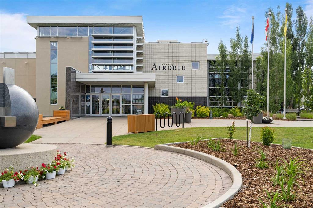 Attention first-time home buyers, down-sizers and investors! This 761 sq ft, 2 BEDROOM, 2 BATH, CORNER UNIT CONDO is AFFORDABLE AND MOVE-IN READY with FRESH PAINT AND BRAND NEW CARPET. Upon entering, you are greeted by an open-concept design. To the right, is a flex space that could be used as a dining area, an office or for your favorite hobby. A front closet, a 4 piece bathroom and in-suite laundry complete this corner of the condo. To the left, the kitchen offers modern cabinetry, granite counter tops, trendy black/stainless steel appliances and a sit-up eating area and is open to the bright living room. On one side of the living room is the main bedroom featuring a walk-through closet and a 4pc ensuite. The second, good-sized bedroom is located on the opposite side of the living room. The living room is bright and welcoming. Step out the living room door onto your covered balcony which is a great place to barbeque, relax or entertain. The complex is PET FRIENDLY, allowing one dog or cat. This condo is complete with one underground, heated, titled parking spot and visitor parking is available outside the main doors. Creekside Crossing condo building is conveniently located in the center of Airdrie and is close to shopping, Nose Creek walking trails, Iron Horse Park and all that downtown Airdrie has to offer. Easy access to highway QE2. Call your favorite realtor today to view.