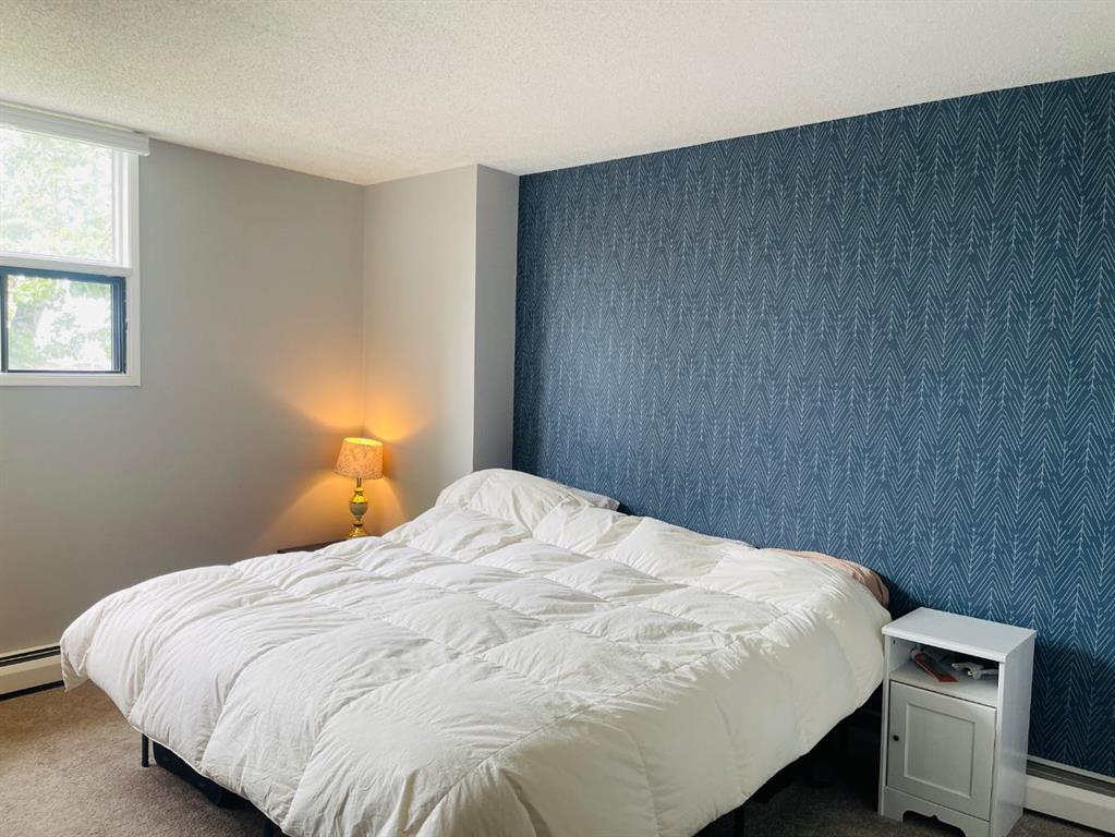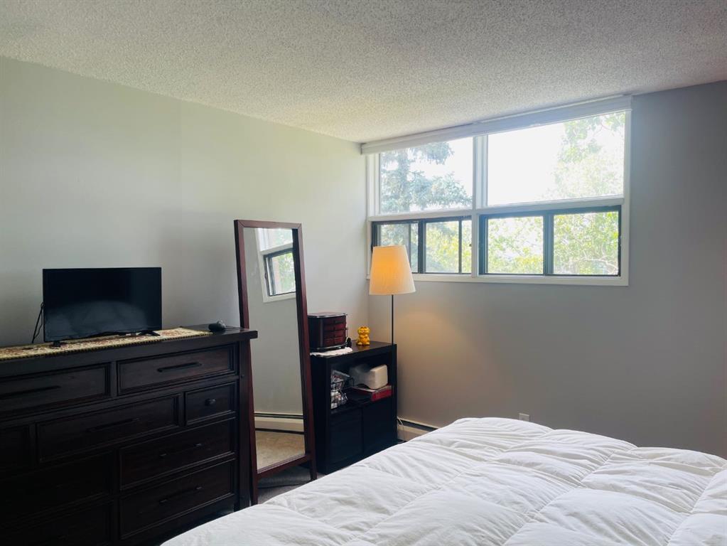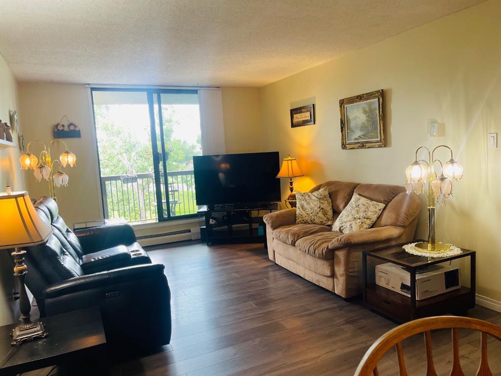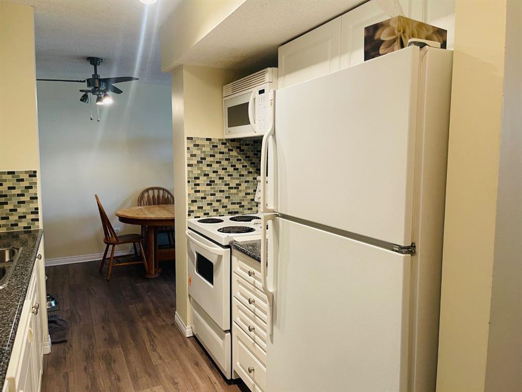 Welcome to Maryland Terrace, a quiet concrete building that's well run, well maintained, and secure. Your new 2-bedroom, 1-bathroom with in-suite laundry offers a very good size at 874 sq./ft. This unit features a condo fee that includes electricity, heat ,water & a on-site manager. You'll love the galley-style kitchen with modern white cabinets, a microwave hood fan allowing for more counter space, and matching white appliances including a built-in dishwasher. You will appreciate the formal dining area and spacious living room with sliding doors leading to an oversized covered balcony, perfect for barbecuing and entertaining. Additional highlights include newer laminate flooring, new backsplash, and an upgraded full bathroom. The master is huge with a walk-in closet and room for a king-size bed and plenty more. This unit is very clean and well maintained. The building boasts excellent amenities including a gym, sauna, and games room. Its prime location near Sunridge Mall offers fantastic shopping, with easy access to downtown Calgary, SAIT/U of C, public transit, and major routes like the Trans-Canada Highway and Deerfoot Trail.