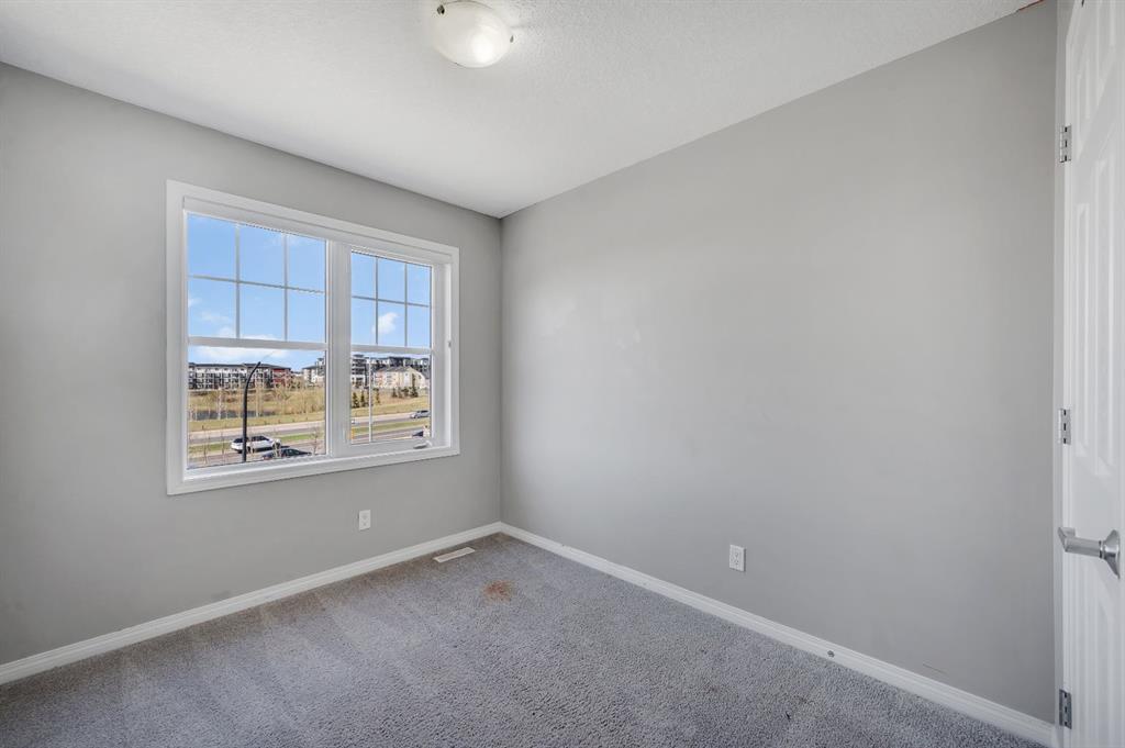 Welcome to 341 Cityscape Court NE, Calgary – a stunning end-unit townhouse that perfectly combines modern style, functional design, and an unbeatable location directly across from green space in the vibrant community of Cityscape. Offering over 1,500 sq. ft. of developed living space with 3 bedrooms and 2.5 bathrooms, this home is an ideal choice for first-time buyers, young families, or investors. The main living area is bright and open, designed for both entertaining and everyday comfort. The sleek kitchen features stainless steel appliances, quartz countertops, and ample cabinetry, flowing seamlessly into the dining area and spacious family room, with a convenient 2-piece bathroom completing this level. Upstairs, the primary bedroom offers a large walk-in closet and a private 4-piece ensuite, while two additional bedrooms, a full bathroom, and upper-floor laundry provide practicality and ease for family living. As an end unit, this home enjoys extra windows, abundant natural light, and enhanced privacy. The attached single garage with driveway allows for parking for two vehicles, while the balcony provides the perfect spot to relax and enjoy your morning coffee or evening breeze. Families will love the green space and playground just steps away, while the low monthly condo fee of $367 includes snow removal, landscaping, insurance, and more, ensuring stress-free living. With shopping, parks, schools, transit, and major roadways all nearby, Cityscape is one of Calgary NE’s most sought-after neighborhoods. Move-in ready and beautifully maintained, this home is waiting for you—schedule your private showing today!