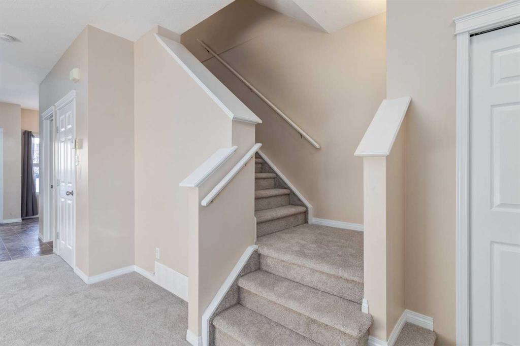 Newly updated! Own your own home in the vibrant community of Taradale! This charming townhome style condo is a 2-bedroom up plus room in the basement that has been traditionally used as a bedroom, with ensuite bathroom. Bathrooms on each level (2.5 total) Fantastic value in a well-maintained development perfect for first-time buyers, families, or investors. Step inside to a bright and functional layout with an open plan spacious living area and kitchen featuring plenty of counter space and storage—plus direct access to your outside patio, ideal for summer BBQs and relaxing outdoors. The main floor includes a convenient half bath for guests. Upstairs, you’ll find two generously sized bedrooms and a full 4-piece bathroom. The basement has been fully developed by the builder offering even more living space, perfect for a family room, home office, or play area. There’s also a dedicated laundry area and plenty of storage and an additional 4 piece bathroom. Enjoy low condo fees of only $310/month, which cover common area maintenance, snow removal, building insurance, and more—saving you time and money year-round! Assigned parking right outside your front door as well as additional parking available for monthly rental through the condo management company. Located in Calgary’s northeast, Taradale is a welcoming, diverse neighbourhood known for its family-friendly atmosphere, nearby schools, and community parks. Walk to schools, playgrounds, and transit—including the Saddletowne LRT. Close to shopping, restaurants, medical clinics, and more. Quick access to Metis Trail and Stoney Trail makes commuting easy. This well-kept home won’t last at this price—book your private showing today and step into homeownership in Taradale!