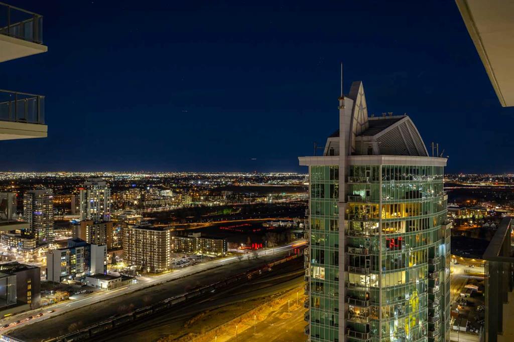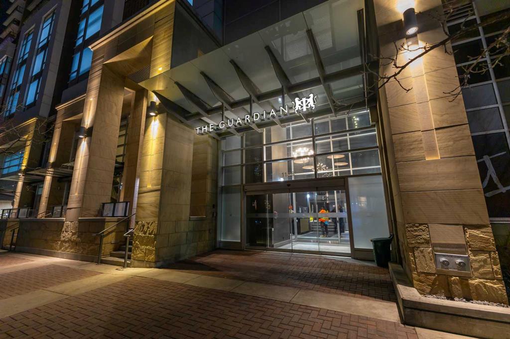 Welcome to Downtown Living at its finest where luxury meets practicality. Enjoy the unrestricted Calgary Skyline Views from the balcony. The unit is on 35th floor and all units above are sub-penthouses. The unit has been recently painted and has new LVP flooring. The residents enjoy the facilities like state of the art gym and residents lounge with kitchen, ping pong tables, TVs, books, games and so much more. The iconic Guardian towers built in 2017 stands tall as Alberta's tallest residential towers. There is underground parking available for rent or purchase. This is your opportunity to lock in your downtown living in the growing entertainment district. You are steps away from Scotia Saddledome, BMO Center, groceries, top rated cafes and Cowboys Casino. Call today to book your viewing!