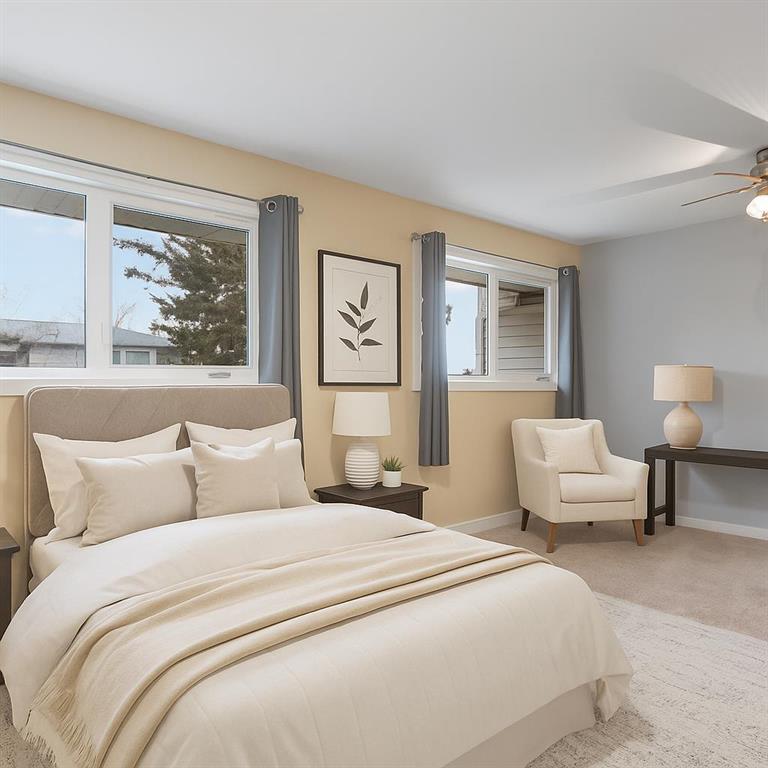 Welcome to Killarney Glen Court, an ideally located inner-city townhome community surrounded by mature trees and park-like green spaces. This updated three-level townhouse combines modern comfort with an effortless layout that feels bright, open, and connected. The main level features a spacious living room with a cozy gas fireplace, large picture window, and durable vinyl plank flooring that flows seamlessly into the dining area and renovated kitchen. The kitchen impresses with two-tone cabinetry, stainless steel appliances, a textured brick backsplash, and ample counter space for cooking and entertaining. Upstairs, you’ll find two generous bedrooms, including a king-sized primary with double closets, and a refreshed 4-piece bath with full tile tub surround and updated fixtures. The fully developed basement adds valuable flexibility with a large recreation room, guest bedroom or office, and a stylish 3-piece bathroom with fully-tiled shower — perfect for movie nights, hobbies, or visiting guests. Outside, your assigned parking spot is conveniently located just outside the back door. The well-managed complex offers excellent value with a low condo fee that covers snow removal, landscaping, and professional management. Set in one of Calgary’s most desirable neighbourhoods, you’re minutes to Marda Loop, 17th Ave, downtown, and the LRT, with easy access to schools, playgrounds, and bike paths. A fantastic opportunity for first-time buyers, investors, or anyone seeking the best of inner-city living in a quiet, established community.