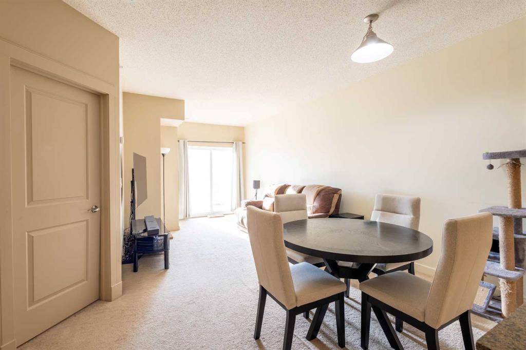 Welcome to this well-appointed home offering comfort, functionality, and an inviting open-concept layout. A standout feature is this complex won the 2025 Condominium of the Year Award by CCI South Alberta, emphasizing incredible maintenance and quality throughout all aspects of the property! This home includes a titled parking stall, and a convenient storage locker located directly in front, providing excellent practicality for everyday living. Residents also enjoy access to desirable building amenities, including a fully equipped gym, 2 fantastic party rooms —ideal for entertaining or relaxing and two guest suites that you can rent out for guests. Step inside to discover a bright and spacious interior designed to maximize natural light and flow. The kitchen features stainless steel appliances, granite countertops, and a smart layout that opens seamlessly to the eating nook. The eating nook continues the open-concept design, flowing naturally into both the kitchen and living room. The living room is filled with natural light, with direct access to the south-facing back deck. This outdoor space is perfect for enjoying sunny afternoons, morning coffee, or evening relaxation, thanks to its desirable exposure. The primary bedroom is both spacious and bright, offering a comfortable retreat at the end of the day. It features direct access to a 4-piece bathroom and a closet with excellent hanging space, combining convenience with thoughtful storage. Completing the home is in-suite laundry with additional storage, a secondary bedroom and air conditioning! With its open layout, quality finishes, and excellent amenities, this home offers a balanced blend of comfort, style, and functionality—ideal for modern living!