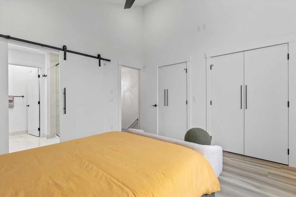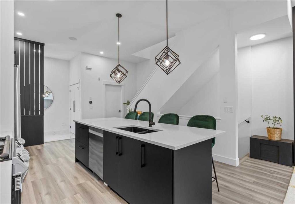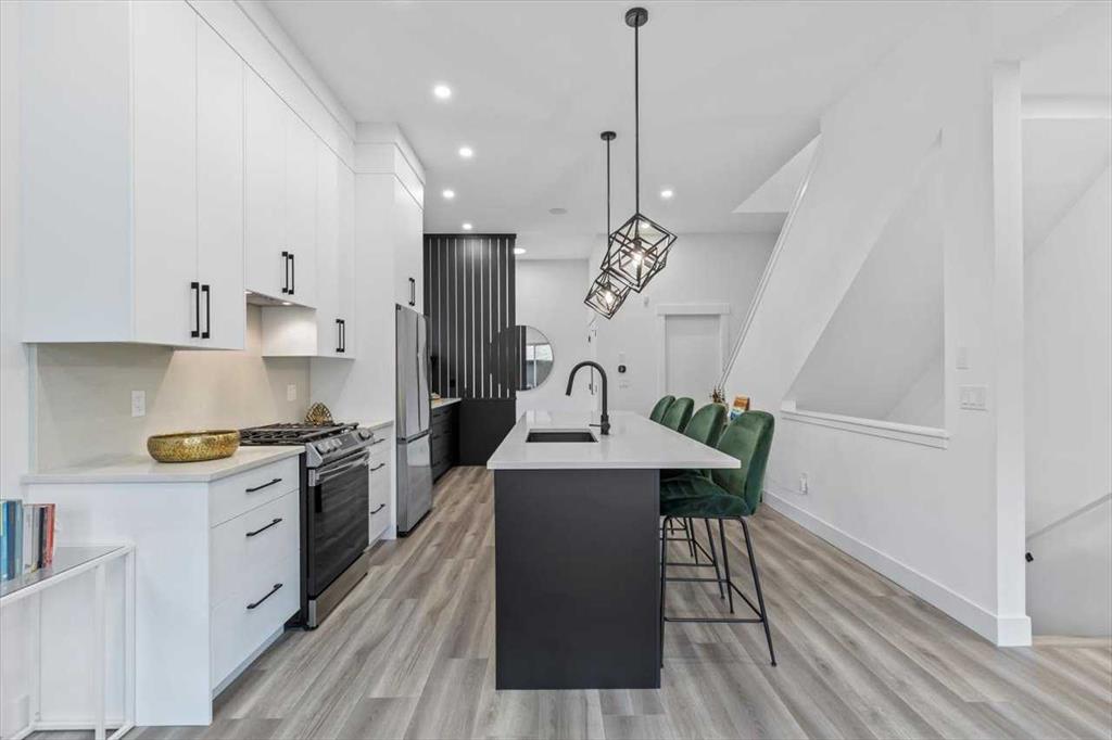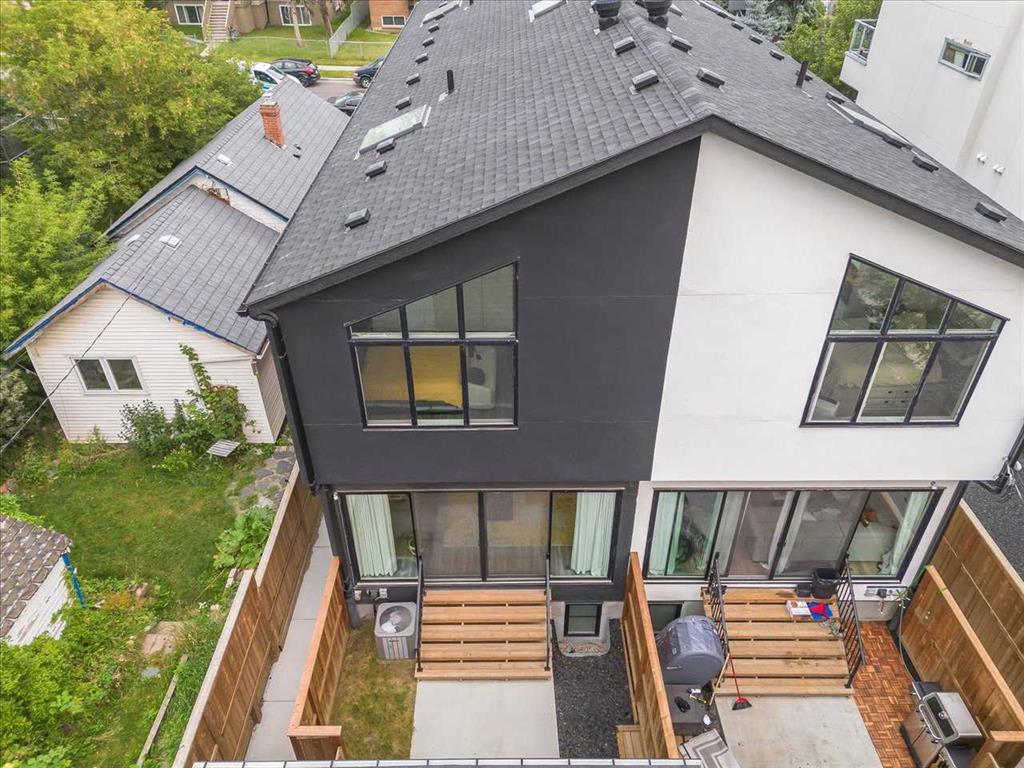 ---- Open house Sat. Nov. 29 from 1-3 pm -----Welcome to this Immaculate and thoughtfully designed town home in the heart of Marda Loop, over 1,700 sq ft of living space, just minutes away from downtown. Features superior party wall system between units. Main floor showcases 11 ft ceiling, open concept layout, vinyl plank flooring, designer built entry unit. The living room is spacious featuring a wall unit, sleek tile, and a Bluetooth enabled electric fireplace. The kitchen is equally impressive, boasting a large island with quartz counter top, ideal for entertaining, ample soft- close cabinetry, stainless steel appliances. The large south facing sliding door brings in rays of sunshine and light through out the day, tastefully covered with Hunter Douglas honeycomb shades and floor to ceiling blackout drapes for privacy professionally installed by Normandeau, overlookimg a fenced, cozy yard leading to a single detached garage.This floor is completed by a spacious guest half bath. Upstairs, the primary bedroom is a true retreat, with vaulted ceilings, double door his and hers closets, large windows with professionally installed electric blackout honeycomb shades. The barn door leads into a spa-like en-suite with heated flooring, double sink vanity, quartz counters, skylight, oversized tiled shower and dual shower heads. The second large bedroom also has it's own en-suite and skylight, plus manual honeycomb shades. The fully finished basement boasts a bright family/ flex room. A third spacious bedroom with a walk-in closet and a full bath. THIS HOME COMES WITH COUNTLESS UPGRADES- A/C, high efficiency furnace, humidifier, thankless hot water on demand, radon extraction sump pump, built-in speaker system, light dimmers in master bedroom, smart thermostat (ecobee), bathroom fan timers, kitchen and master bedroom lights can be manged through smartphone. This exceptional home offers the best of urban living in an ideal location. This is the one you have been waiting for. Book a showing today.
