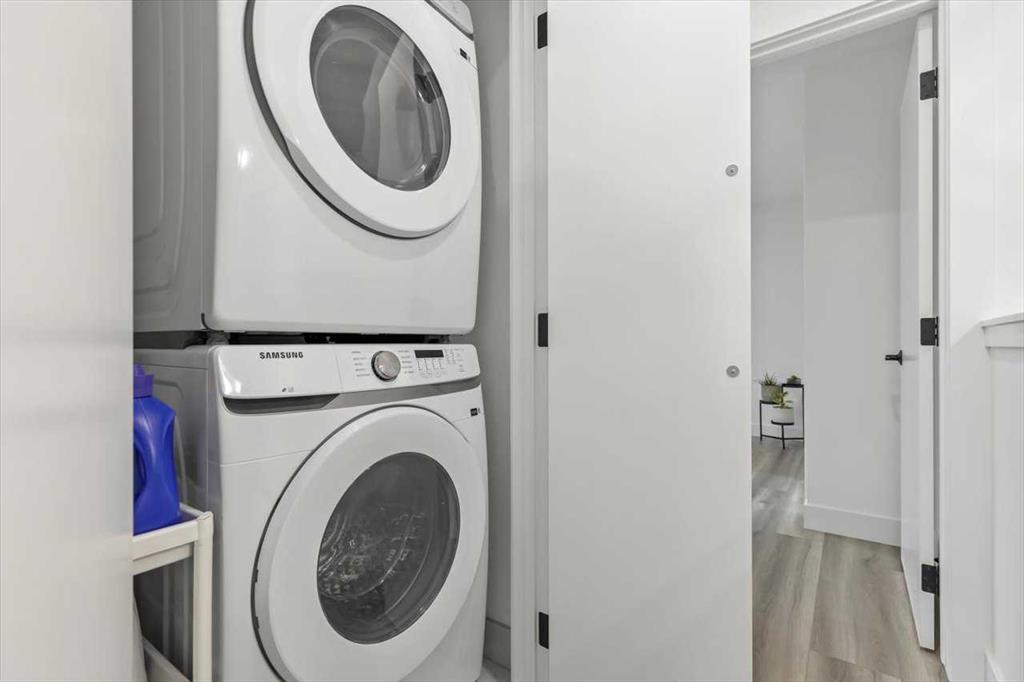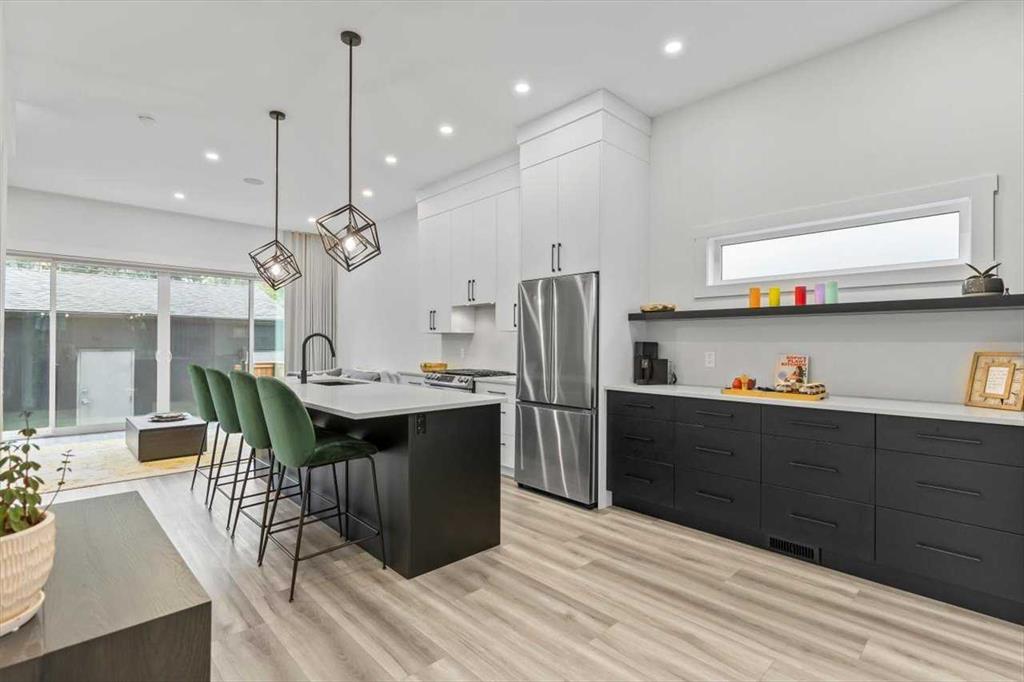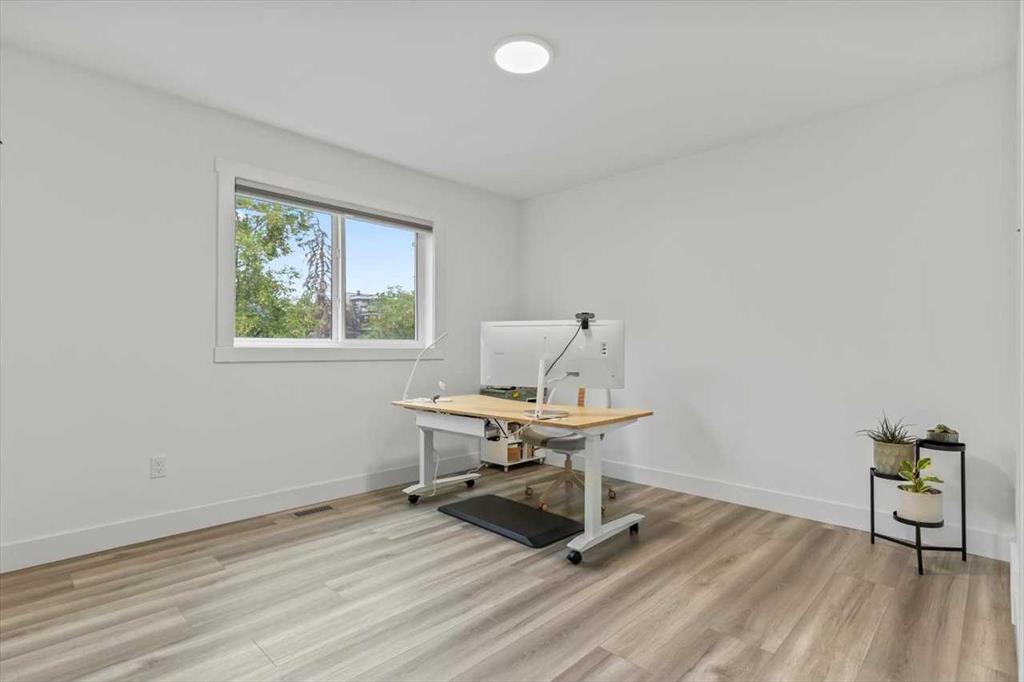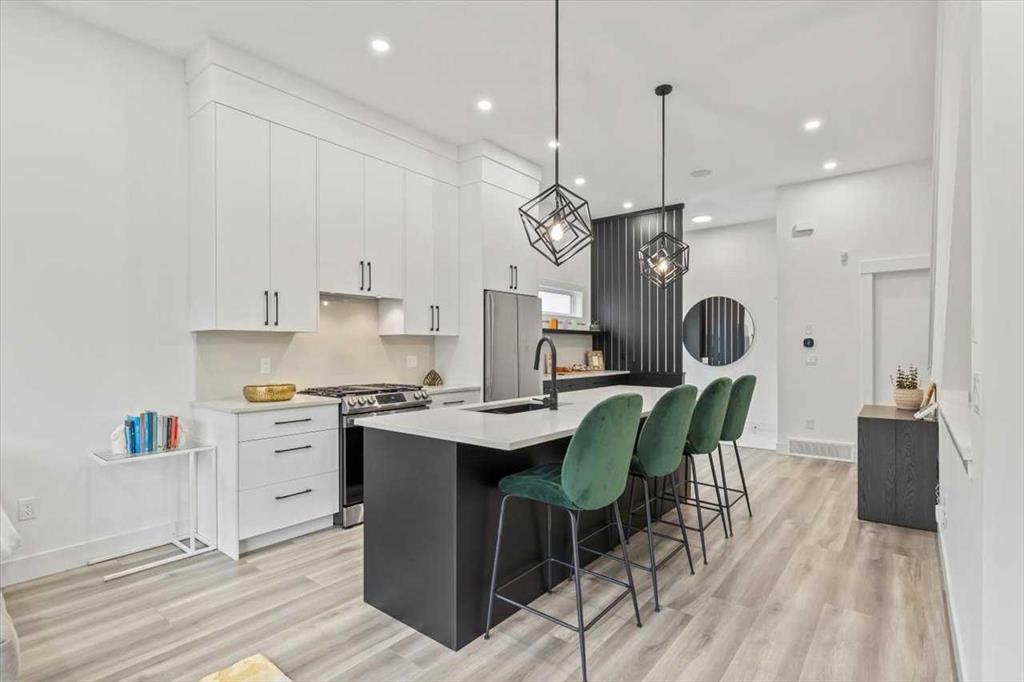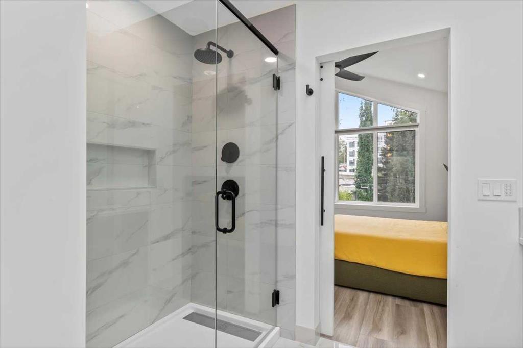 ---- Open house Sat. Nov. 29 from 1-3 pm -----Welcome to this Immaculate and thoughtfully designed town home in the heart of Marda Loop, over 1,700 sq ft of living space, just minutes away from downtown. Features superior party wall system between units. Main floor showcases 11 ft ceiling, open concept layout, vinyl plank flooring, designer built entry unit. The living room is spacious featuring a wall unit, sleek tile, and a Bluetooth enabled electric fireplace. The kitchen is equally impressive, boasting a large island with quartz counter top, ideal for entertaining, ample soft- close cabinetry, stainless steel appliances. The large south facing sliding door brings in rays of sunshine and light through out the day, tastefully covered with Hunter Douglas honeycomb shades and floor to ceiling blackout drapes for privacy professionally installed by Normandeau, overlookimg a fenced, cozy yard leading to a single detached garage.This floor is completed by a spacious guest half bath. Upstairs, the primary bedroom is a true retreat, with vaulted ceilings, double door his and hers closets, large windows with professionally installed electric blackout honeycomb shades. The barn door leads into a spa-like en-suite with heated flooring, double sink vanity, quartz counters, skylight, oversized tiled shower and dual shower heads. The second large bedroom also has it's own en-suite and skylight, plus manual honeycomb shades. The fully finished basement boasts a bright family/ flex room. A third spacious bedroom with a walk-in closet and a full bath. THIS HOME COMES WITH COUNTLESS UPGRADES- A/C, high efficiency furnace, humidifier, thankless hot water on demand, radon extraction sump pump, built-in speaker system, light dimmers in master bedroom, smart thermostat (ecobee), bathroom fan timers, kitchen and master bedroom lights can be manged through smartphone. This exceptional home offers the best of urban living in an ideal location. This is the one you have been waiting for. Book a showing today.