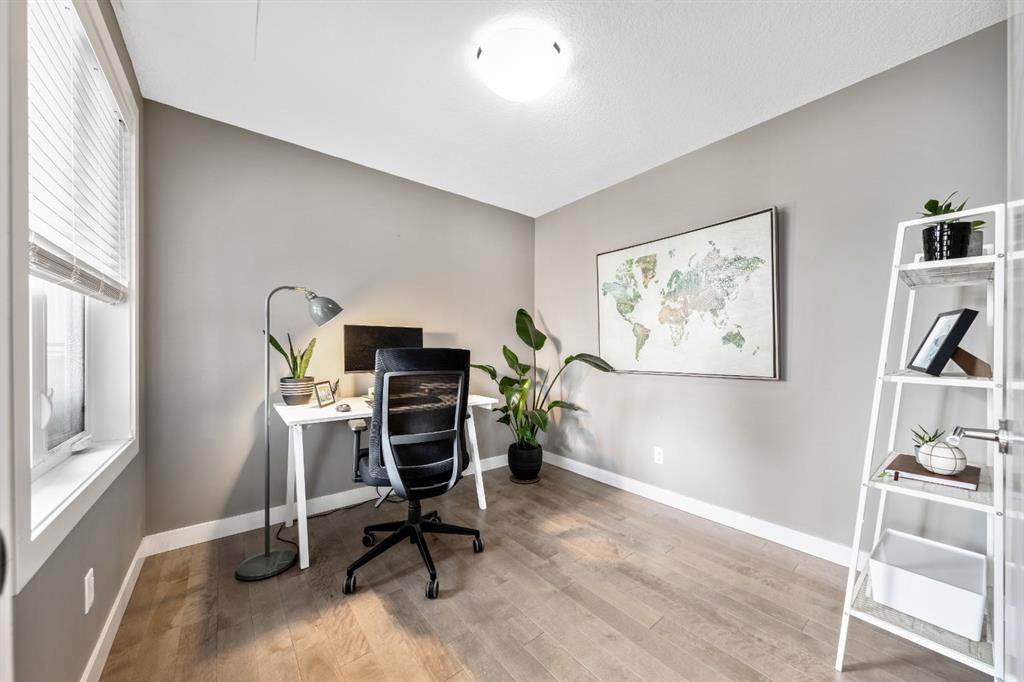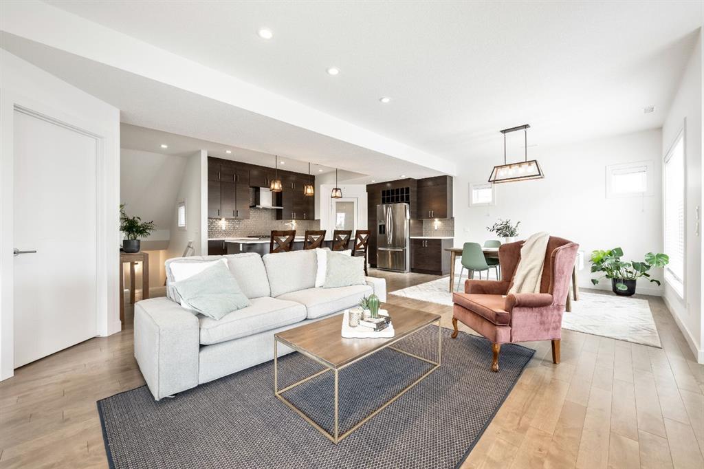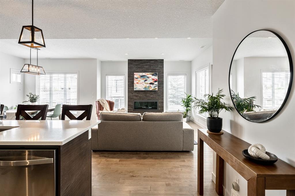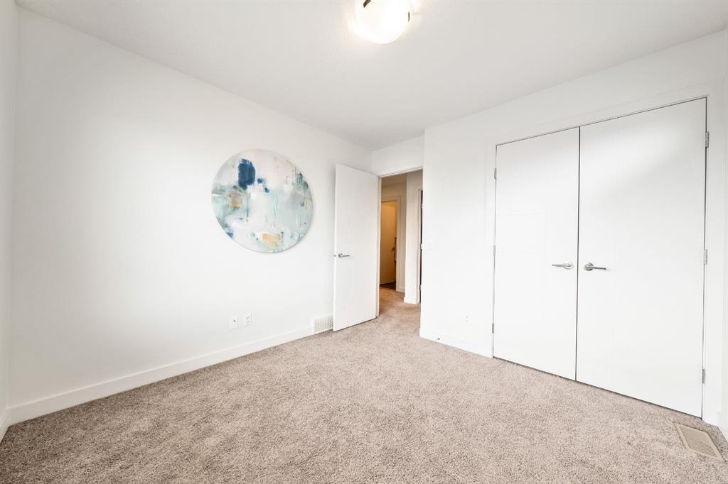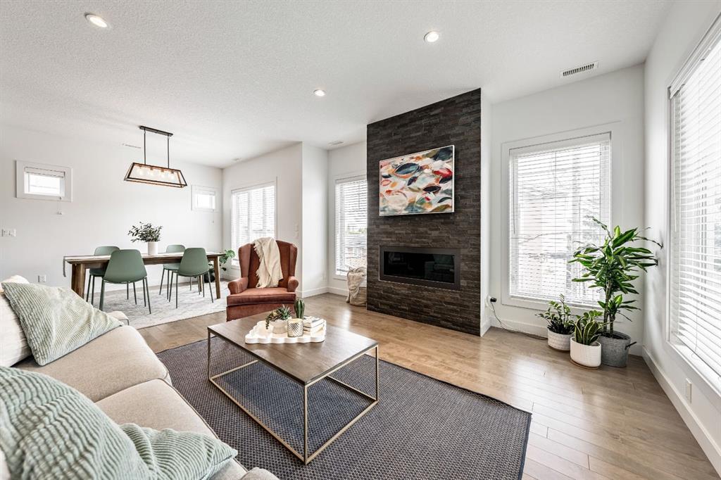 A rare opportunity to live in a luxurious end unit townhome on a quiet street offering over 2000 sq ft in the One of Calgary’s most desirable inner-city neighborhoods Killarney. This immaculate home has plenty of upgrades; 9’ knockdown ceilings, gleaming hardwood floors, upgraded plumbing fixtures, Hunter Douglas blinds, stone counters, custom closets, fresh paint, the comforts of air conditioning and a concrete wall separating you and the one neighbor. Head down the courtyard to unit 4 where you are greeted by a large front foyer and convenient direct access to the heated garage. This space was intentionally designed to be on its own separate level as a drop zone and to keep the mud and mess down and away. Upstairs is flooded with natural light. The massive chef inspired kitchen is a focal point with slow close cabinets that reach to the ceiling, built in wine rack, undercabinet lights, premium SS appliances (including a gas range) and chimney hood fan, an expansive 10-foot island with gorgeous quartz counters, timeless tile backsplash and a large corner pantry for additional storage. Perfect for entertaining the kitchen looks onto the spacious dining room and inviting living room showcasing a gas fireplace with stone detail. Off the living room is a large, covered patio and office perfect for those who work from home, or as a playroom. The powder room is tucked away on its on separate level for privacy and includes side by side laundry with cabinets to keep you organized. On the upper level are two well sized bedrooms one with downtown VIEWS, a 4pc main bath and the primary retreat. This generous sized primary is a true sanctuary with its own private patio a massive walk-in closet and a spa inspired ensuite Including dual sinks, a large soaker tub, and fully tiled shower with 10 mm glass. Beyond Home you will love the lifestyle. Only minutes away from downtown, close to parks, shops, restaurants, schools, the rec center, bow river path system, shaganappi golf course and ctrain! Providing endless opportunities for work and play. If you have been searching for a home that balances luxury with livability in an unbeatable location schedule your private tour today!