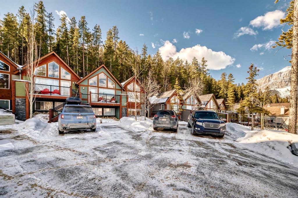 Your Canmore Escape Awaits Discover the perfect mountain retreat in this beautifully maintained 1064 sqft, 2-bedroom alpine-style home, ideally nestled on the slopes of Mount Lawrence Grassi and backing onto serene forested wildlife conservation lands. This is the Canmore getaway you’ve been dreaming of — peaceful, private, and surrounded by nature. Step inside to an airy, open-concept main floor where soaring vaulted ceilings and expansive picture windows frame breathtaking mountain views. Warm maple hardwood floors and charming log cabin accents create an inviting alpine ambiance — the perfect setting for cozy winter evenings or bright summer mornings filled with natural light. The thoughtfully designed lower level offers two generously sized bedrooms with large windows, a full 4-piece bath, in-suite laundry, and ample storage — ideal for hosting family and friends for weekend escapes. As a desirable end unit, this home enjoys extra windows, enhanced privacy, and an elevated position with spectacular mountain views from the rear deck. Whether you're enjoying your morning coffee or unwinding after a day on the trails, this outdoor space delivers. With abundant indoor and outdoor storage for skis, bikes, and hiking gear, adventure is always within reach. Low-maintenance, move-in ready, and surrounded by nature — this is mountain living at its finest. A true Canmore retreat, ready to enjoy in every season.