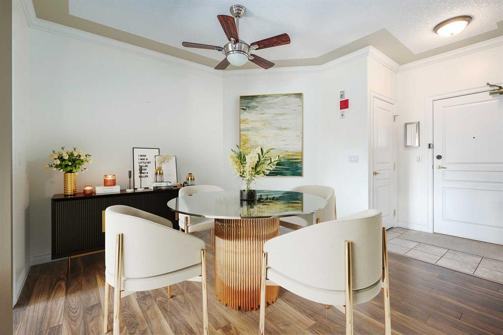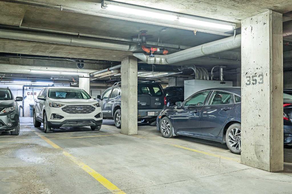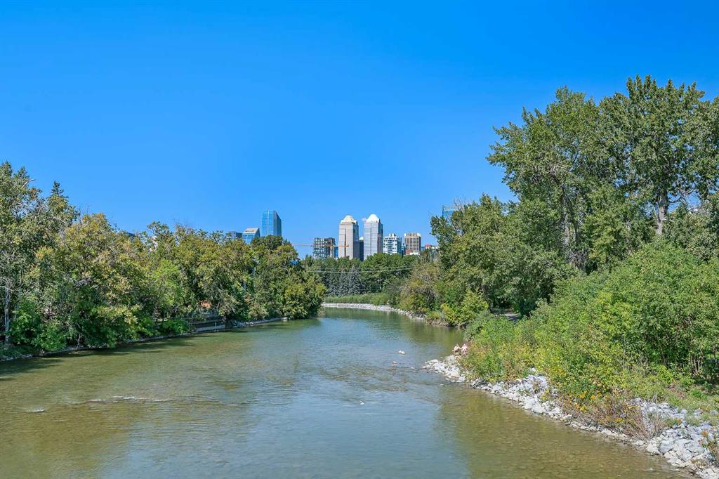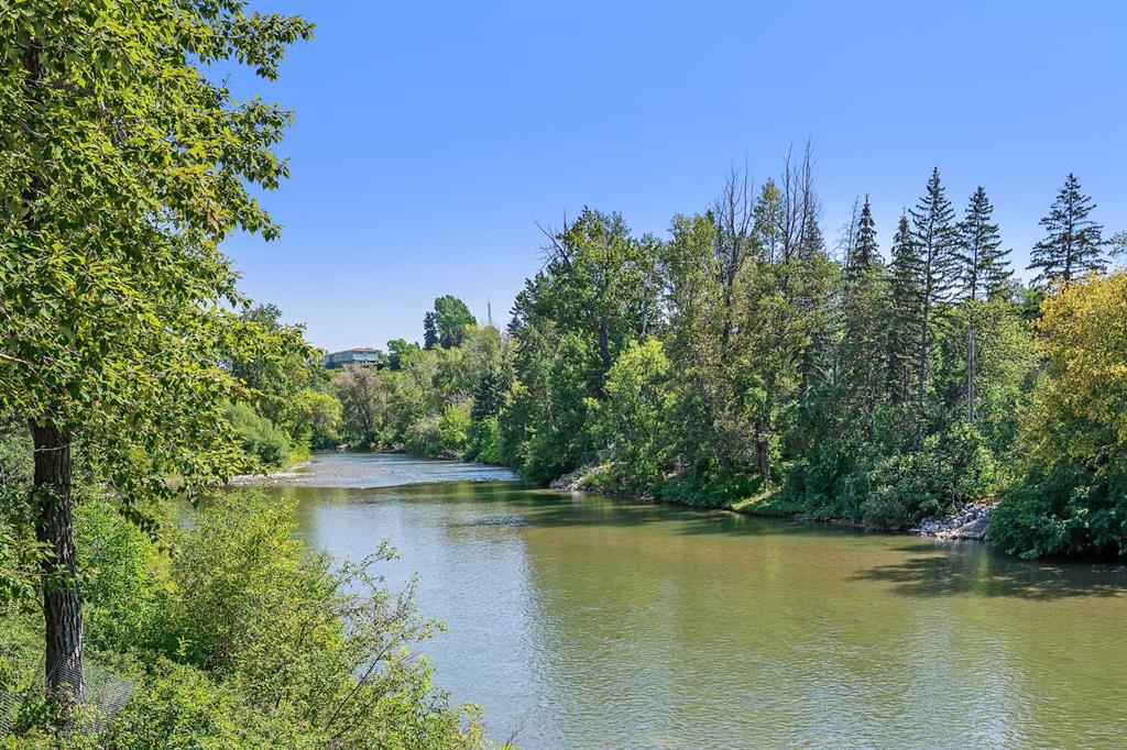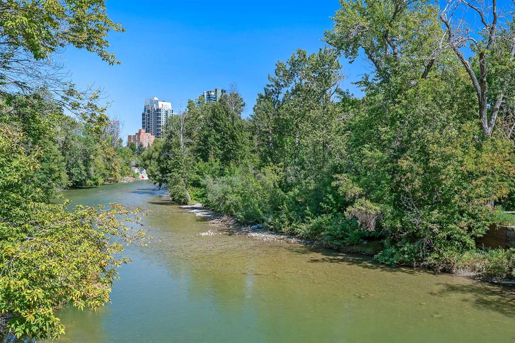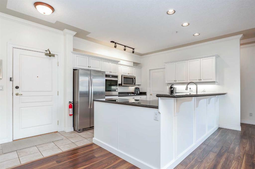 This bright & spacious 2 bedroom, 2 full bath condo in lovely River Grande Estates has an optimal layout with bedrooms on opposite sides of the condo for privacy. The open, airy plan presents laminate flooring & high ceilings accented with elegant crown moulding, showcasing the kitchen that’s tastefully finished with granite counter tops, eating bar, crisp white cabinets & stainless steel appliances. A dining area with ample space to host family & friends plus living room with corner feature fireplace are perfect for entertaining. The generously sized primary bedroom boasts a walk-in closet & private 5 piece ensuite with dual sinks, relaxing corner soaker tub & separate shower. The second bedroom also with a walk-in closet & direct access to a 3 piece bath are ideal for guests. Other notable features include convenient in-suite laundry, in-floor heating, private south facing balcony, one titled underground parking stall & an assigned storage locker. Building amenities include a car wash, recreation room with pool table & party room with kitchen facilities. Located steps from Elbow River pathways & close to Stampede Park, MNP Community & Sport Centre, vibrant 4th Street shopping, restaurants & cafes, public transit & walking distance to downtown.