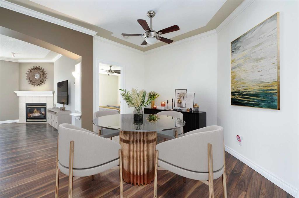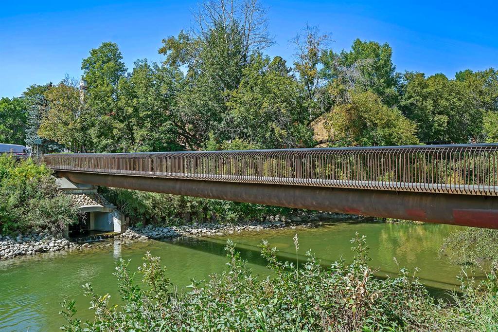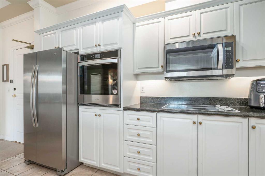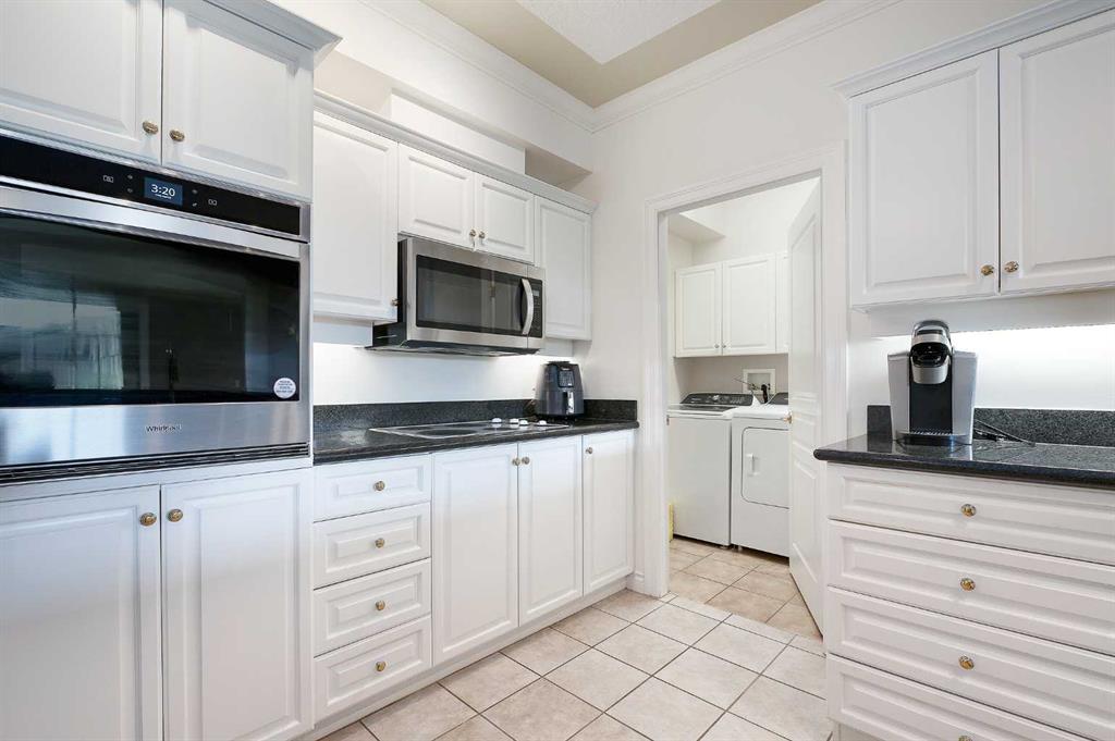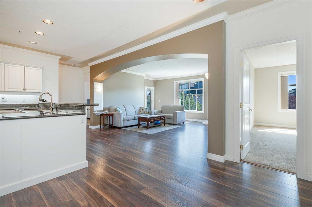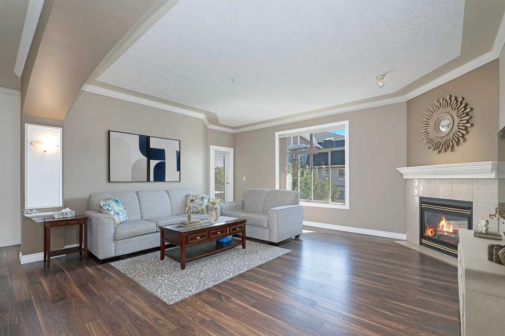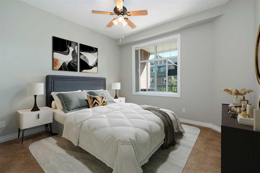 This bright & spacious 2 bedroom, 2 full bath condo in lovely River Grande Estates has an optimal layout with bedrooms on opposite sides of the condo for privacy. The open, airy plan presents laminate flooring & high ceilings accented with elegant crown moulding, showcasing the kitchen that’s tastefully finished with granite counter tops, eating bar, crisp white cabinets & stainless steel appliances. A dining area with ample space to host family & friends plus living room with corner feature fireplace are perfect for entertaining. The generously sized primary bedroom boasts a walk-in closet & private 5 piece ensuite with dual sinks, relaxing corner soaker tub & separate shower. The second bedroom also with a walk-in closet & direct access to a 3 piece bath are ideal for guests. Other notable features include convenient in-suite laundry, in-floor heating, private south facing balcony, one titled underground parking stall & an assigned storage locker. Building amenities include a car wash, recreation room with pool table & party room with kitchen facilities. Located steps from Elbow River pathways & close to Stampede Park, MNP Community & Sport Centre, vibrant 4th Street shopping, restaurants & cafes, public transit & walking distance to downtown.