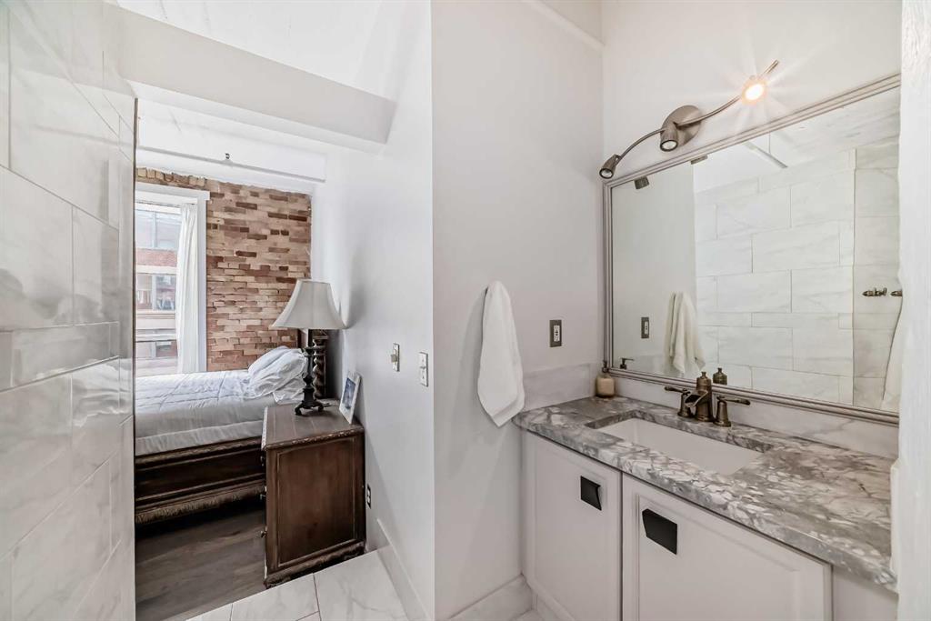 Own a piece of Calgary’s history in this stunning corner unit at Lewis Lofts. Perfectly positioned in the heart of the Beltline, this 4th-floor residence blends timeless architectural charm with modern comfort. High ceilings, exposed brick and concrete, a modern floor plan, and a signature arched window create a bright, open living space full of character. The thoughtfully updated kitchen features stone countertops, stainless steel appliances, and a gas range, flowing seamlessly into the living area complete with hardwood floors, a gas fireplace, and downtown views. Retreat to the private bedroom with a walk-in closet and ensuite. Enjoy your own balcony, plus access to a rooftop garden with gazebo and BBQ. Complete with underground parking, storage, and in-suite laundry, this pet-friendly, adult-only building places you steps from Calgary’s best restaurants, shops, transit, and entertainment.