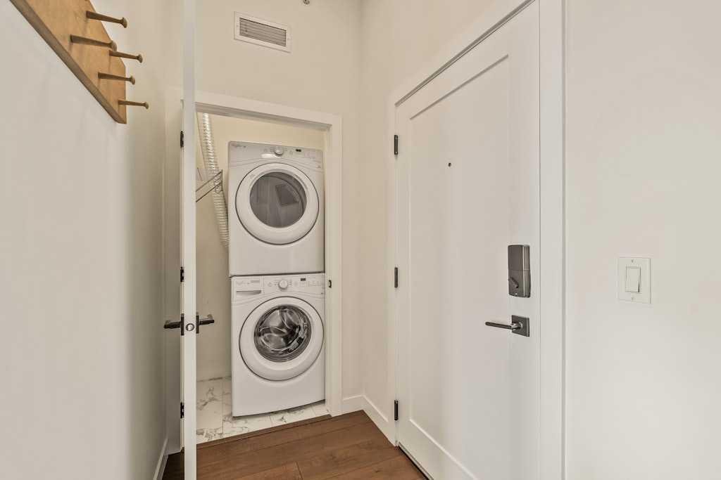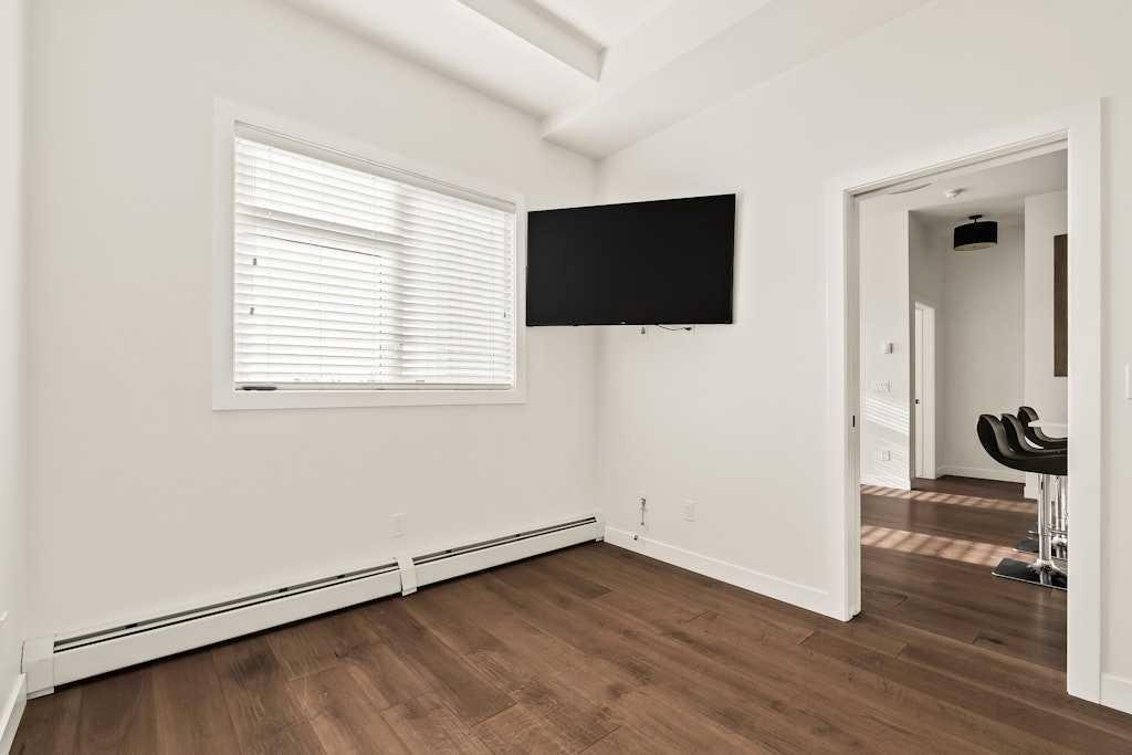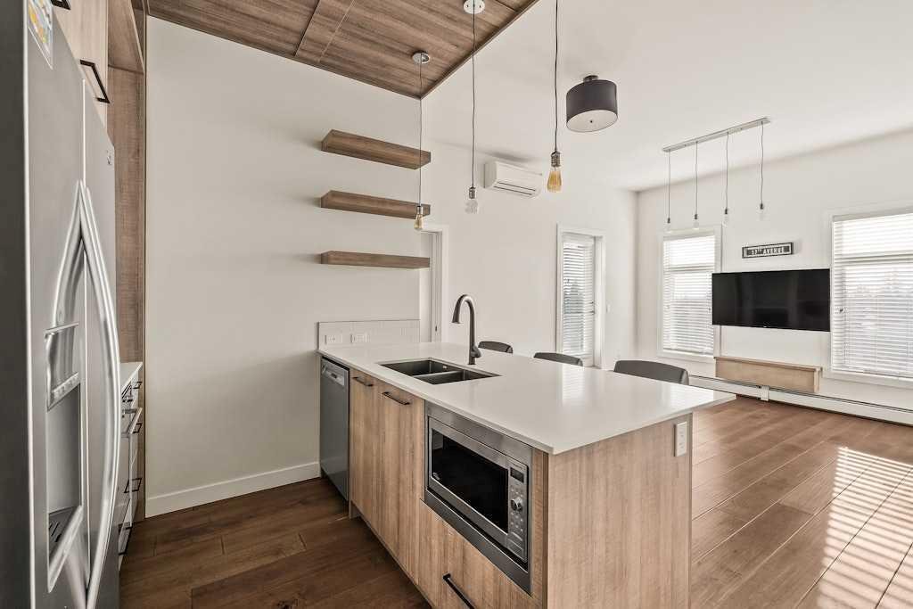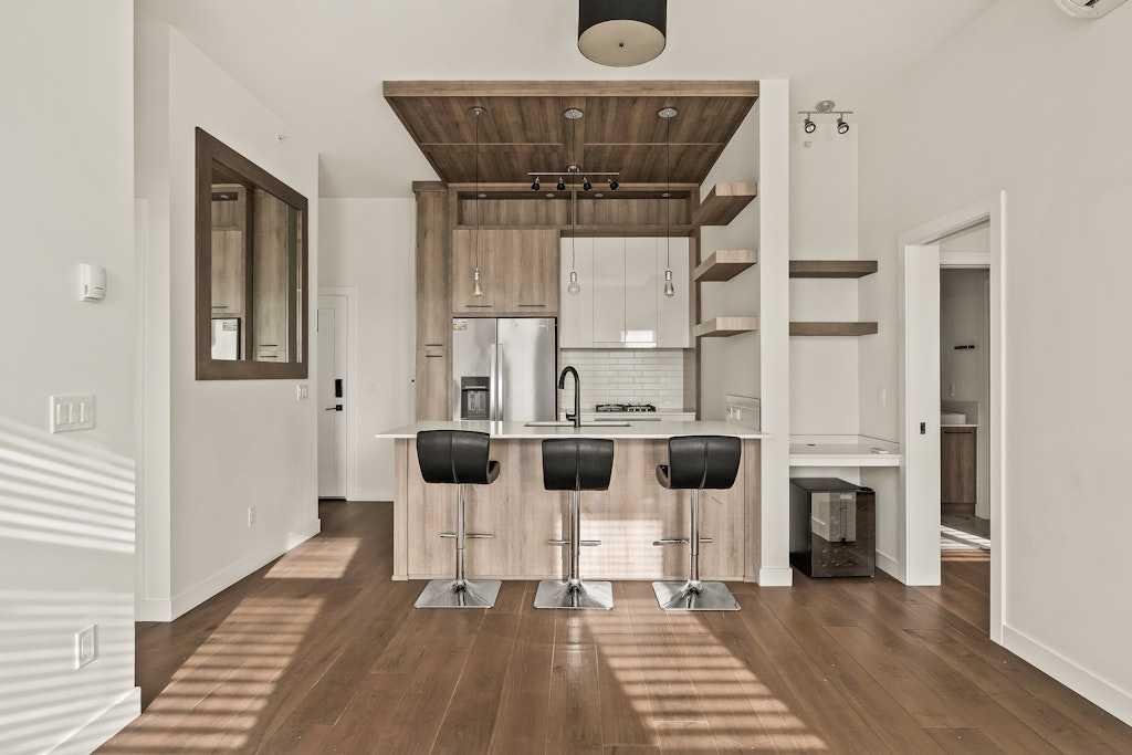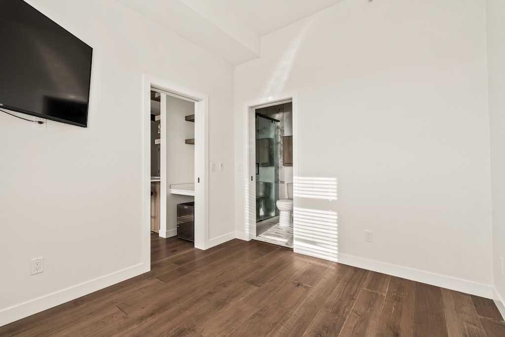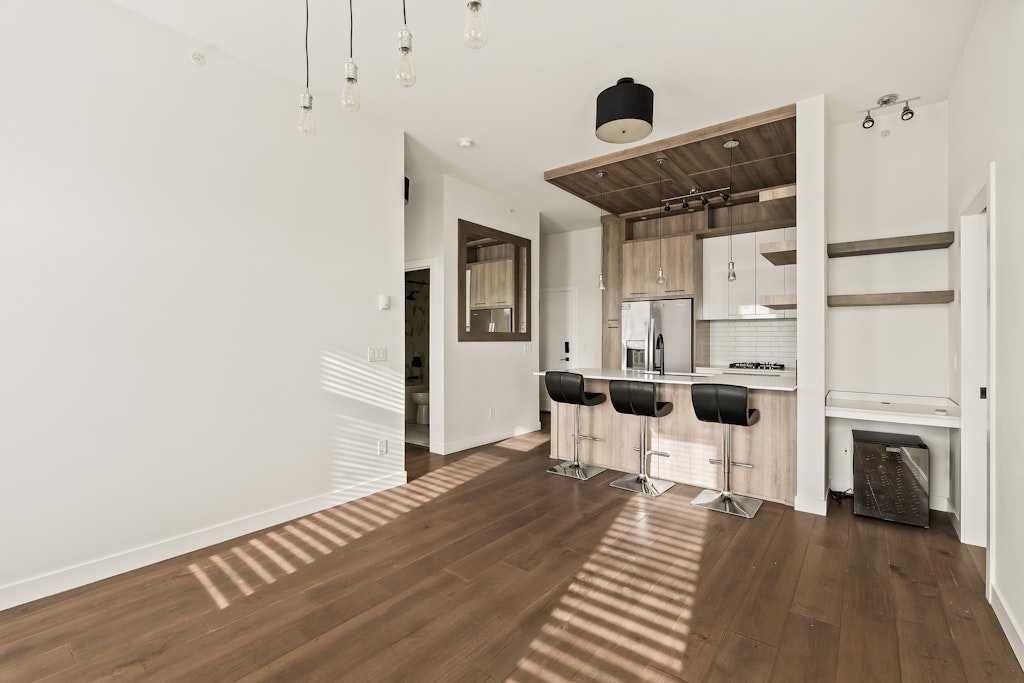 Perched on the top floor of 1741, this beautifully curated 2-bed, 2-bath residence blends contemporary sophistication with effortless urban living, offering a sunny south-facing balcony with a gas BBQ hook-up and a coveted position steps from Calgary’s favourite restaurants, boutique shopping, the LRT, Killarney Pool, Shaganappi Golf Course, local parks, and the library. Inside, illuminated in natural light and boasting all fresh paint, discover hand-scraped engineered hardwood floors that sets a warm, textural foundation for the opulent picture-frame kitchen-finished with high-gloss soft-close cabinetry, white subway tile backsplash stainless steel appliances including a gas cooktop and french-door fridge with filtered water/ice, Caesarstone counters, an under mount sink, under-cabinet LED lighting, and modern industrial-inspired fixtures glowing with vintage Edison bulbs. Thoughtful finishes elevate the everyday: A/C, a custom pantry, added shelving over the built-in desk nook, a newer dishwasher (1.5 years), garburator, matte-black hardware throughout, and seamless in-suite laundry. The spacious layout offers plenty of space to entertain, and offers excellent separation between the bedrooms, making it ideal for couples, professionals, or shared living, while underground titled parking and an assigned storage unit provide year-round convenience. Perfectly balancing high design and high function, you'll find every element of refined inner-city living in one exceptional property. **OPEN HOUSE: Saturday, November 15th from 1:00 - 3:00pm**