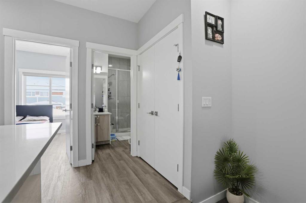 *Former Show Home* | 3-Bedrooms | 3-Bathrooms | High Ceilings | Open Floor Plan | Stainless Steel Appliances | Quartz Countertops | Balcony | Attached Garage. No expense was spared in the creation of this jewel. Welcome to this stunning 3-storey townhouse with low condo fees boasting 1,236 SqFt. The main level of this home is a tandem double garage and a personal entry door. Head upstairs to a bright and welcoming 2nd floor emphasized by 9-ft ceilings, an open concept layout, and many large windows allowing an abundance of natural light. The home is skillfully designed to include a bedroom and full 3pc bathroom on the 2nd level. It's all in the details; the main level bathroom features a glass door shower with gorgeous tiled walls. The living room, kitchen and dining area flow together and lead outside to a generous walk-out balcony. The living room accent wall is TV ready and has a beautiful electric fireplace. Let's talk about the kitchen! Kitchen features full height cabinets, ample storage space, exquisite quartz counters, stainless steel appliances and beautiful honeycomb backsplash. The massive island with barstool seating is a great addition for social cooking. Now making our way to the upper level we find 2 large bedrooms and TWO ensuites. The primary bedroom features His & Hers closets. Both ensuites are accented with incredible tiled backsplash and a tub/shower combo with incredible tiled backsplash. The upper level laundry is well placed near the bedrooms for easy access. Parking is not a problem as there is a double tandem garage. This complex has low condo fees and is nicely surrounded by green space and courtyards with unique architecture and easy access to main transportation routes to get you where you want to go in all directions. Walk or bike along the pathways or to shop; enjoy the parks and playgrounds of your new home! Hurry and book a showing of this incredible property today!