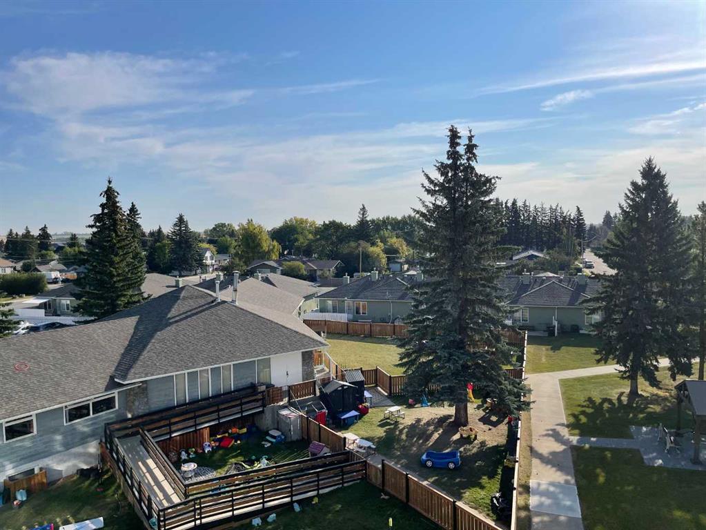 This very well maintained top floor condo unit may be just the ticket for you to get rid of the snow shovels and lawn mower! Campus Green is a great community within the great community of Didsbury. The open plan allows you to have plenty of options for setting up your main living areas. Step inside this unit and into the bright white kitchen with plenty of cabinets and a newer counter-top. The living room and dining area are conveniently located off of the kitchen. Walk through the living room that features a wall style air conditioner and sliding patio doors to the east facing covered balcony. From your balcony you have terrific views of the courtyard/greenspace behind and of the east side of Didsbury and even the countryside beyond. The balcony features a handy storage closet for those items you don't use everyday. The primary bedroom is spacious and features 2 closets and a 2 piece ensuite. The main bathroom has a nice shower with seat and a large vanity. The second bedroom boasts french doors and a murphy bed wall unit that allows it to be an office and a guest room. The laundry room has additional storage space. This building has secure heated parking, a gathering rec room space and a social area with tables and chairs. Truly a nice place to call home.