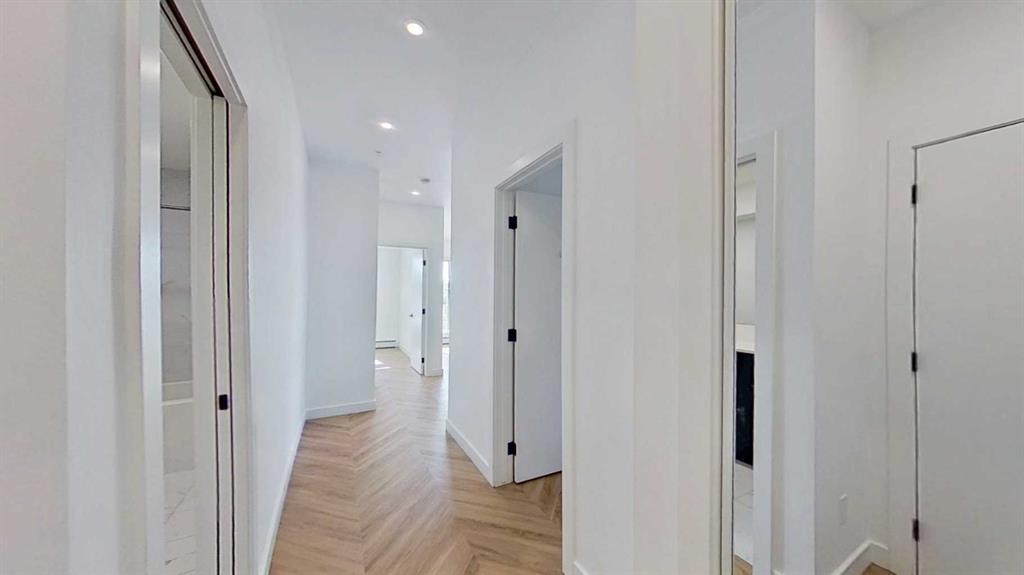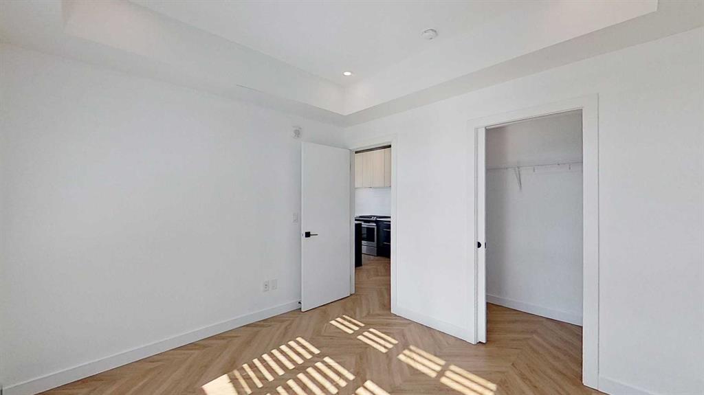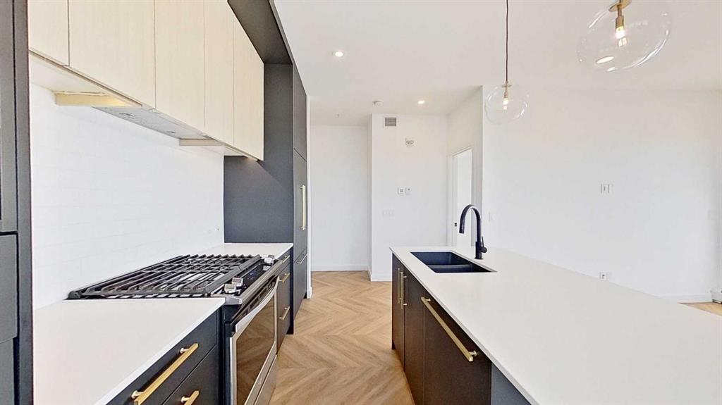 Experience modern living in this exceptional 2-bedroom, 1-bathroom condo, perfectly situated in Calgary’s award-winning University District. This stylish and thoughtfully designed unit features a spacious layout with a unique floor plan and abundant natural light throughout. The modern kitchen is fully upgraded with premium quartz countertops, sleek cabinetry, an elegant backsplash, and a chic eating bar— perfect for casual dining or entertaining. The open-concept design seamlessly connects the kitchen and living areas, enhancing the sense of space and comfort. Both bedrooms are generously sized with ample closet space, and the bathroom is beautifully finished with contemporary fixtures. Ideal for professionals, students, or small families, this condo combines functionality with style. Additional highlights include in-suite laundry, upgraded lighting, and smart storage solutions. A large balcony (152 SF) with breathtaking, unobstructed views, an ideal outdoor retreat for gardening, dining, or simply relaxing in style.” The unit also comes with a titled underground parking stall, adding convenience and peace of mind. The building offers impressive amenities such as a fitness room, bike storage, a cycle room, and a pet wash station—designed to complement your active, modern lifestyle. Located just minutes from the University of Calgary, Alberta Children’s Hospital, Foothills Medical Centre, Market Mall, restaurants, cafés, grocery stores, a movie theatre, parks, and scenic walking trails, this home delivers unmatched urban convenience. Whether you're a first-time buyer, investor, downsizer, or looking to live close to campus and top medical facilities, this condo is the perfect blend of comfort, luxury, and location.
