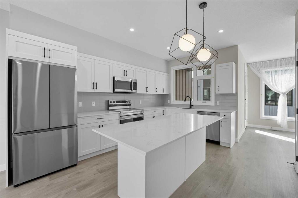 This home, constructed by Logel Homes—an award-winning builder recognized as Calgary's most decorated multi-family developer—is situated in Sage Hill and offers a blend of quality and functionality. The residence is thoughtfully designed for both comfort and convenience. It includes four bedrooms and 2.5 bathrooms, providing ample space for families or guests. The southeast-facing orientation ensures abundant natural light throughout the home, enhanced by oversized windows and 9-foot ceilings on the main level. Residents enjoy breathtaking views overlooking an environmental reserve, bringing a sense of tranquility to everyday living. High-quality finishes are featured throughout, including full-height cabinets, elegant quartz countertops, beautiful, upgraded lighting fixtures, and stainless-steel appliances. Both a front patio and a covered rear deck extend the living space outdoors, perfect for relaxation and entertaining. This home is ready for possession and comes with no HOA fees, providing added value and flexibility for future homeowners. This house shows 10/10. Don’t miss your chance to call it yours!