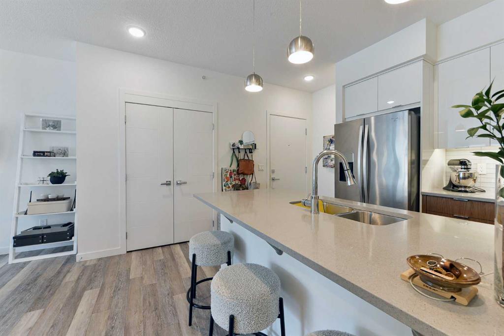 Top-floor corner unit in the highly desirable Duke building in Mission! This 2-bedroom, 2-bath condo offers over 1,000 sq. ft. of bright, open-concept living with large windows and luxury vinyl plank flooring throughout. The modern kitchen is equipped with quartz counters, a large island, and stainless steel appliances, flowing seamlessly into the spacious living and dining areas. The primary suite features north and west exposure, a walk-in closet, and a private ensuite, while the second bedroom—also with a walk-in closet—offers flexible space for guests or a home office. A full bathroom and laundry room with extra storage add convenience. Step outside to a private west-facing balcony with peaceful views of the park, cathedral, and Alberta Ballet—an inviting spot for your morning coffee or evening wind down. Set in the heart of Mission, you’re surrounded by Calgary’s best inner-city lifestyle. Just steps away are boutique coffee shops, acclaimed restaurants, vibrant pubs, fitness studios, and the Elbow River pathway. Stroll to Lindsay Park, enjoy festivals and markets, or take in the lively yet charming atmosphere that makes Mission one of Calgary’s most sought-after neighbourhoods. Additional features include A/C, custom Hunter Douglas blinds, and heated underground titled parking.