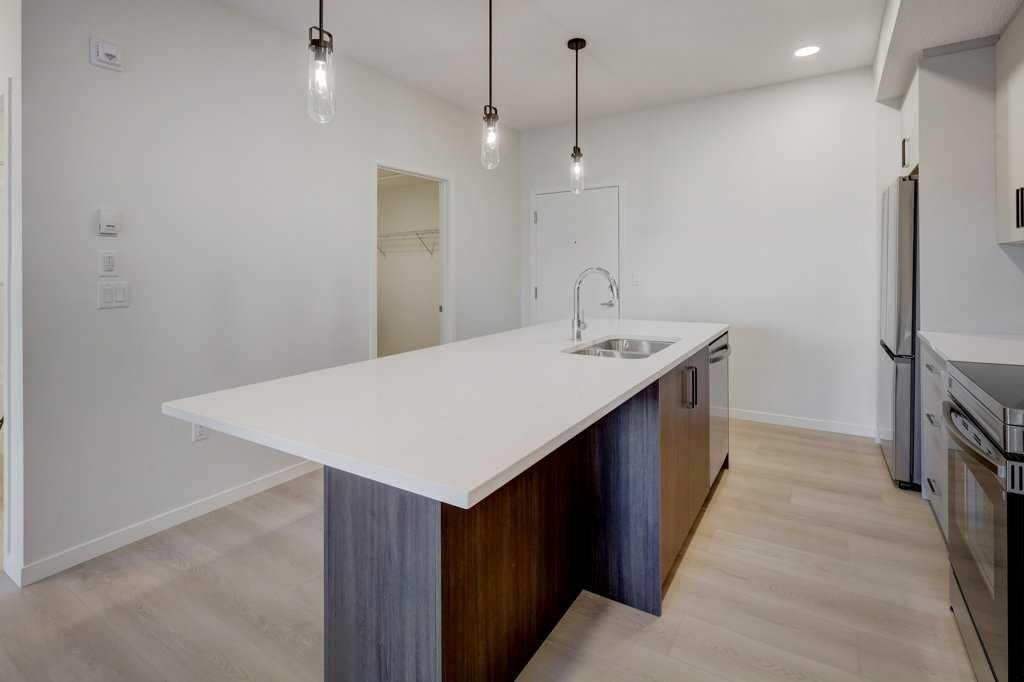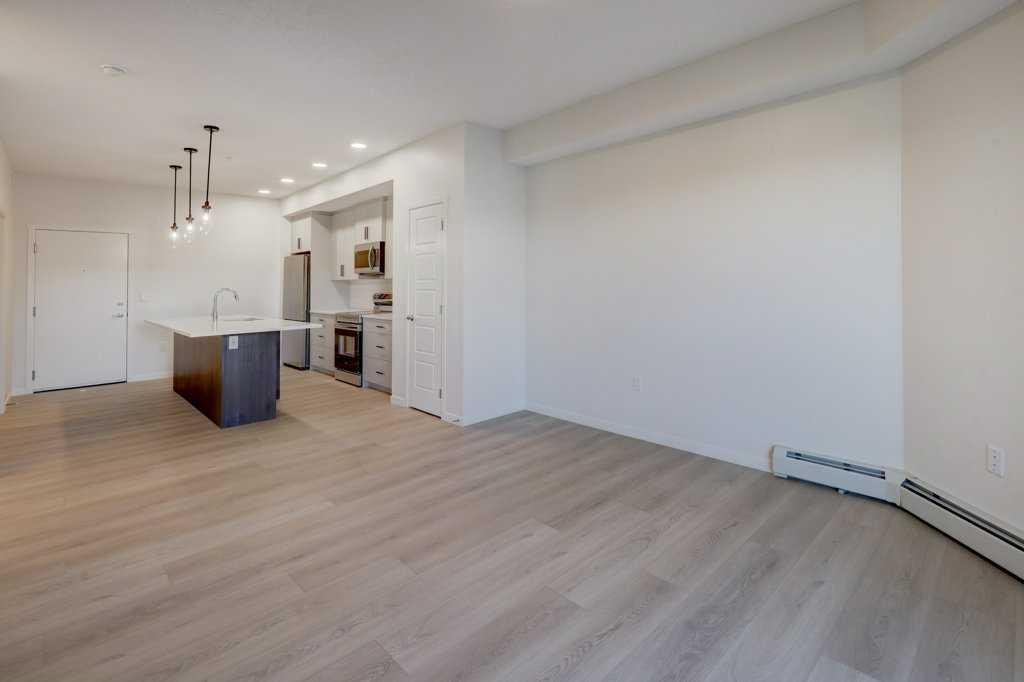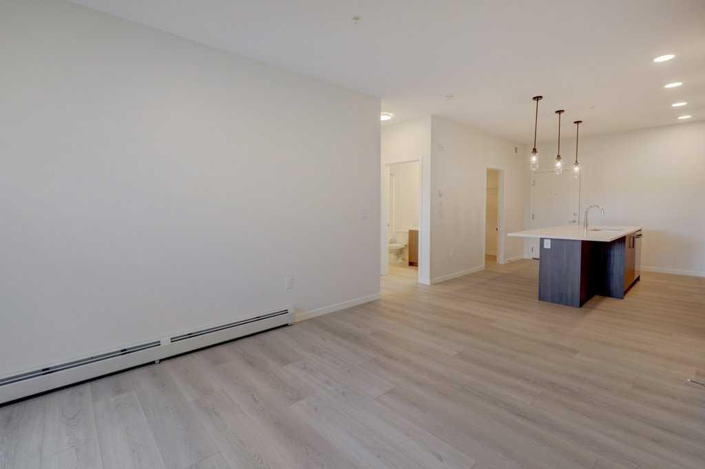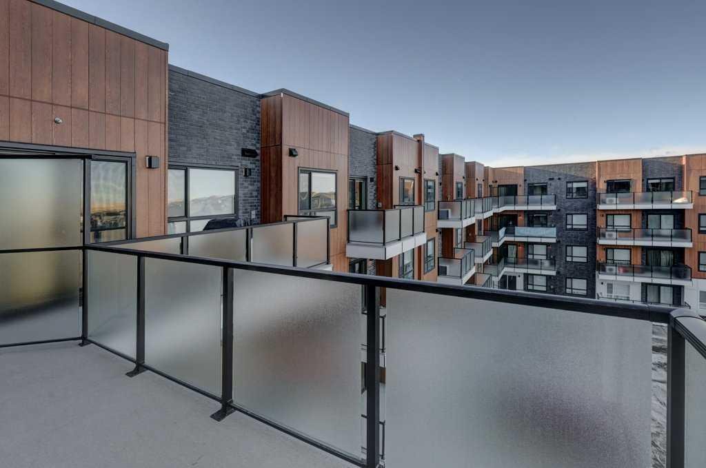 INTRODUCING GLACIER RIDGE, IN BEAUTIFUL NORTHWEST CALGARY. BUILT BY CEDARGLEN LIVING, WINNER OF THE Customer Insight BUILDER OF CHOICE AWARD, 6 YEARS RUNNING! BRAND NEW "GR04" unit with high-spec features. You will feel right at home in this well thought-out TOP FLOOR, 652.95 RMS sq.ft. 1 bed, 1 bath home with open plan, 9' ceilings, LVP flooring throughout (NO CARPET), Low E triple glazed windows, BBQ gas line on the patio, Fresh Air System (ERV), A/C rough-in, and so much more. The kitchen is spectacular with full height, two tone cabinets, quartz counters, upgraded bank of drawers for pots and pans, undermount sink, rough-in water line to the fridge and S/S appliances. The island is extensive with built in flush breakfast bar, which transitions into the spacious living area, perfect for entertaining. The spacious primary bedroom has a large bright window (triple pane windows) and sizeable walk-in closet. Right beside your bedroom is a 4pc bath with quartz counters, upgraded tiles to the ceiling, and undermount sink. Nearby is the spacious laundry/storage room, this is a must see (washer & dryer included). Highlights include: Hardie board siding, designer lighting package, sound reducing membrane to reduce sound transmission between floors, clear glass railing to balconies and 1 titled underground parking stall included. A once in a lifetime community in Northwest Calgary. Framed by views of the Rocky Mountains and distinguished by natural coulees that cross the land, Glacier Ridge offers a rare chance for families to live in a new community. PET FRIENDLY COMPLEX, IMMEDIATE POSSESSION AVAILABLE AND DON'T FORGET TO CHECK OUT THE VIRTUAL TOUR.