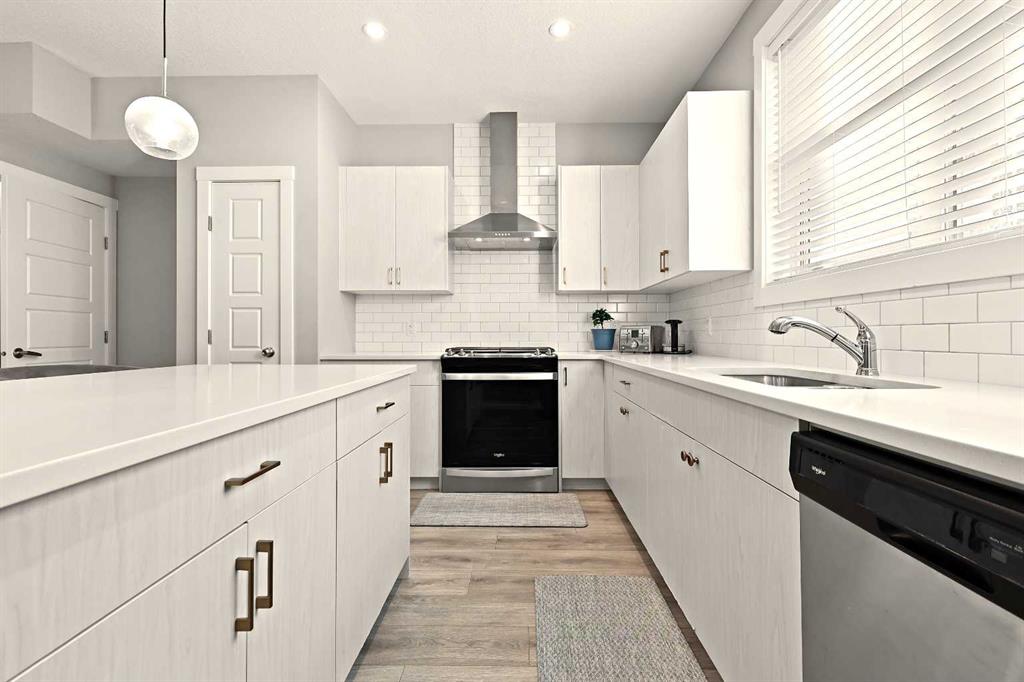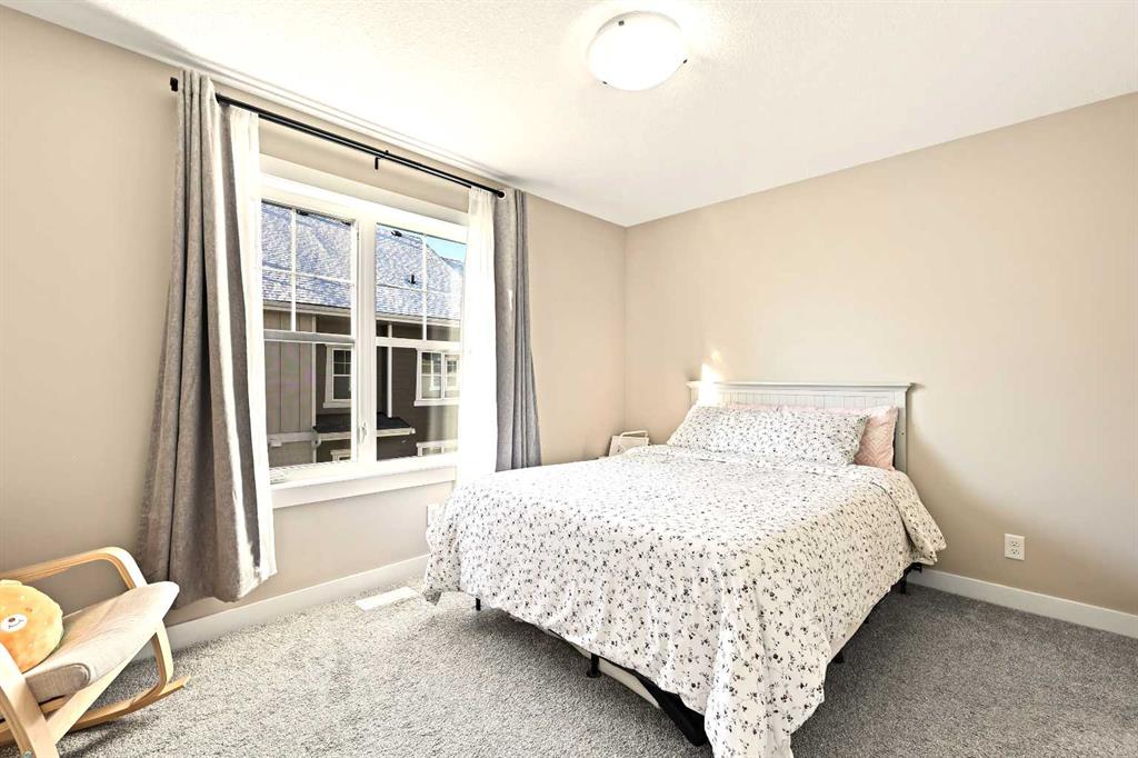 Welcome to the serene and sought-after community of Riverstone in Cranston, where nature becomes your neighbour and the Bow River’s beauty is just steps from your door. Framed by lush green spaces, parks, playgrounds, and an endless network of scenic walking paths, this newer-built 2-storey townhome offers the perfect blend of tranquility and modern convenience. Boasting nearly 1,200 square feet of thoughtfully designed living space, this home welcomes you with a bright, airy colour palette and an inviting sense of openness. The expansive main floor showcases stunning barn-style wide plank luxury vinyl flooring that flows seamlessly from front to back, tying the entire space together with both durability and style. The spacious living room transitions effortlessly into the designated dining area, creating the ideal layout for everyday living and entertaining. At the heart of the home, the gorgeous kitchen features an oversized stone island with flush eating bar, quartz countertops, timeless subway tile backsplash, a designer chimney hood, sleek stainless steel appliances, a convenient pantry, stylish pendant lighting, and impressive 9-foot ceilings that enhance the overall airy ambiance. A perfectly placed half bath completes the main level. Upstairs, you’ll find two beautifully appointed primary bedrooms, each offering its own private 4-piece ensuite—both complete with full tubs—making the upper level ideal for guests, roommates, or family members seeking their own space. The convenience of upper-floor laundry adds a touch of everyday luxury. The lower level hosts the double attached tandem garage, providing ample room for parking, storage, and lifestyle flexibility. Step outside to your spacious fenced concrete patio, an inviting outdoor haven perfect for morning coffee, evening dinners, or simply relaxing in the peaceful Riverstone surroundings. Located in one of Calgary’s most treasured natural communities, you’re just minutes from Deerfoot Trail, Stoney Trail, and the abundant amenities of Seton, including restaurants, shopping, a movie theatre, the South Health Campus, and the world’s largest YMCA. With the shops of 130th Avenue also close by, you’ll enjoy the rare balance of serene living paired with easy access to big-city conveniences. Experience the peace, beauty, and elevated lifestyle of Riverstone—where modern living meets nature’s finest. Welcome home.