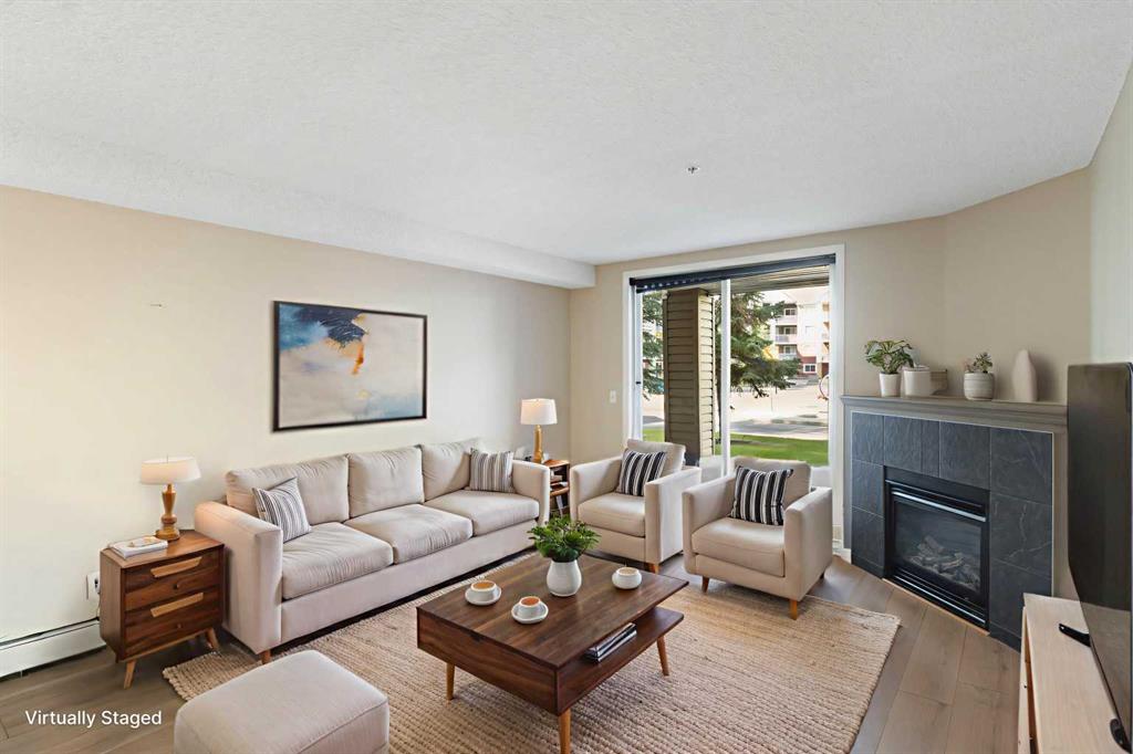 Welcome to this inviting main floor condo in the heart of McKenzie Towne, perfectly refreshed with new paint throughout and ready for its next owner. Offering a smart and functional layout, this 2-bedroom, 1-bath unit combines comfort and convenience with all the features you’ve been looking for. Step inside and you’ll appreciate the open concept design, with laminate flooring carrying through the main living areas. The kitchen offers plenty of workspace, complete with maple cabinetry, a tiled backsplash, black appliances, and both a raised eating bar and breakfast counter—perfect for casual meals or entertaining friends. The spacious dining room easily accommodates a full table, while the adjoining family room is anchored by a cozy corner gas fireplace. From here, sliding patio doors lead to your private patio, making it easy to enjoy summer evenings or walk a pet. The primary bedroom features a walk-in closet for excellent storage, while the large in-suite laundry and storage room adds function and convenience. A well-appointed 4-pc bathroom completes the space. This unit also comes with titled underground parking, keeping your vehicle secure and out of the elements year-round. The location is a highlight—you’ll love being steps from the shops, restaurants, and services of 130th Avenue, with easy access to both Stoney Trail and Deerfoot Trail for commuting or weekend getaways. McKenzie Towne is known for its walkable, community-focused design, with tree-lined streets, pathways, and excellent amenities right at your doorstep. Whether you’re a first-time buyer, downsizer, or investor, this refreshed home offers incredible value in one of Calgary’s most desirable southeast communities.