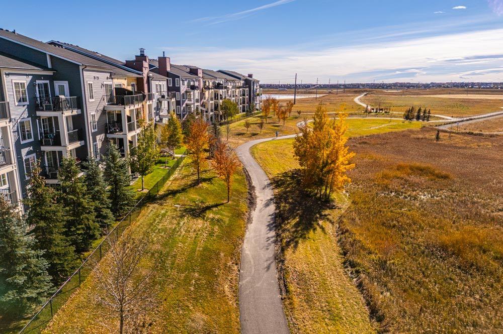 Welcome to 4106 Copperfield Park III - a newer 2016-built apartment set beside the green space and natural reserve. This ground-floor home delivers what buyers want but rarely find at this price: a private west-facing covered patio that opens directly to walking paths and the reserve - an everyday lifestyle upgrade for morning coffee, quick dog walks, or relaxing at sunset.