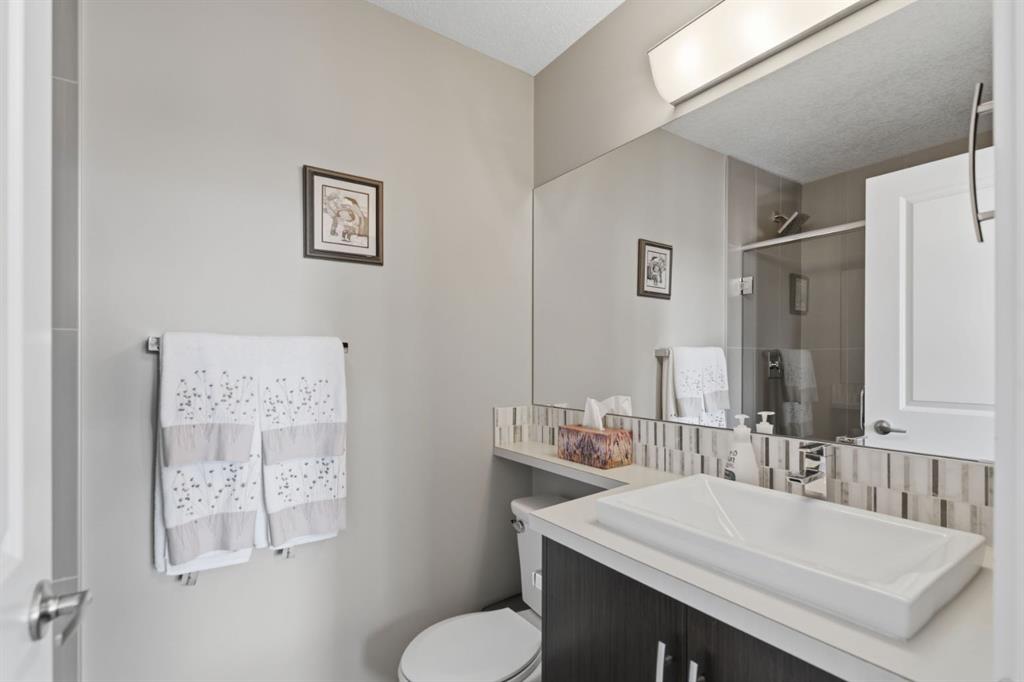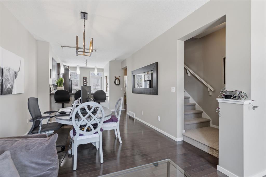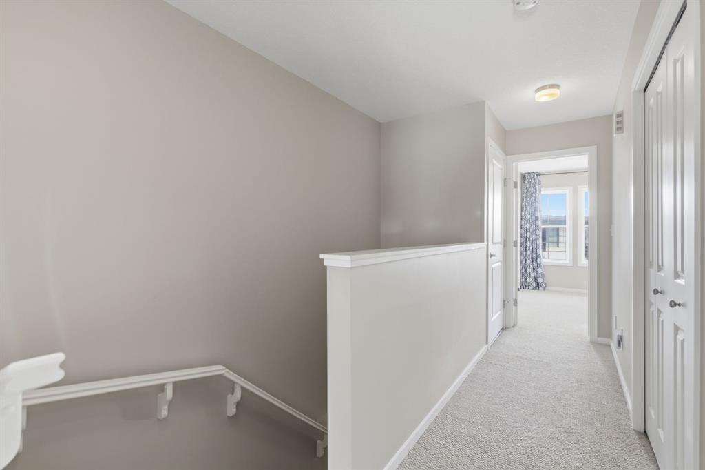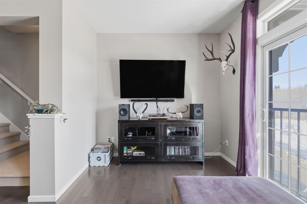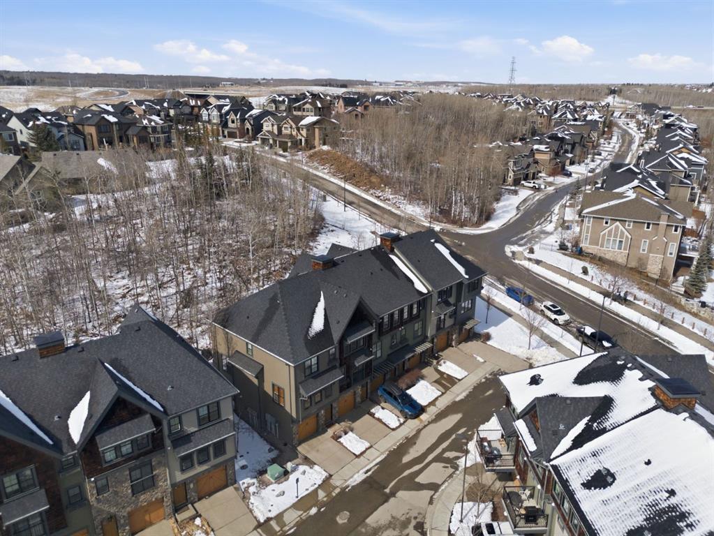 Welcome to this beautifully maintained townhouse offering the perfect blend of style, comfort, and location. With 1,323 sq ft of thoughtfully designed living space, this home features an open-concept layout, hardwood Flooring, a bright kitchen with stainless steel appliances and breakfast area, which allows for seamless flow which is perfect for everyday living. Upstairs, you’ll find 2 spacious bedrooms each with their own walk-in closet and private ensuite, plus a total of 3.5 bathrooms throughout the home for added convenience. Tucked into one of the best locations in the complex, this unit backs onto peaceful trees with no neighbours behind, offering privacy and a serene WEST FACING backdrop. Complete with Double Attached garage and in-suite laundry, this is low-maintenance living in one of Calgary’s most sought-after communities. Don’t miss your chance to see this one today. You won't be disappointed.