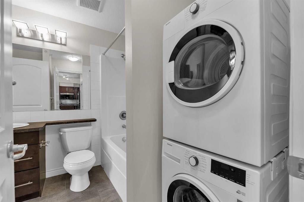TWO titled heated underground parking stalls & TWO titled storage lockers! Welcome to the Summit of Montreux in sought-after Springbank Hill! This bright and spacious top-floor 2-bedroom, 2-bathroom unit offers an exceptional layout with bedrooms thoughtfully positioned on opposite sides, each featuring its own walk-through closet and private 4-piece ensuite, perfect for privacy, guests, or roommates. Natural light pours into the open-concept living space, highlighting the well-appointed kitchen with ample counter space, ideal for everyday living and entertaining. Step out onto your private southeast-facing balcony with a gas hookup, perfect for BBQ while enjoying expansive, unobstructed views. This unit truly stands out with TWO titled heated underground parking stalls, including one conveniently located right beside the elevator, and TWO titled storage lockers, a rare and valuable feature. Additional highlights include: In-suite brand new laundry (washer 2026 & dryer 2026), Generous in-unit storage space. Access to a fully equipped fitness facility, bicycle storage, visitor parking, and a private courtyard. Located just steps from the shops and dining of Aspen Landing Shopping Centre, and close to walking paths, natural green spaces, schools, and transit. Minutes from Westside Recreation Centre, the LRT, downtown Calgary, and quick access to the mountains via Stoney Trail. Move-in ready and available for immediate possession. This is a fantastic opportunity to enjoy comfort, convenience, and lifestyle in one of Calgary’s most desirable communities. Book your private showing today!