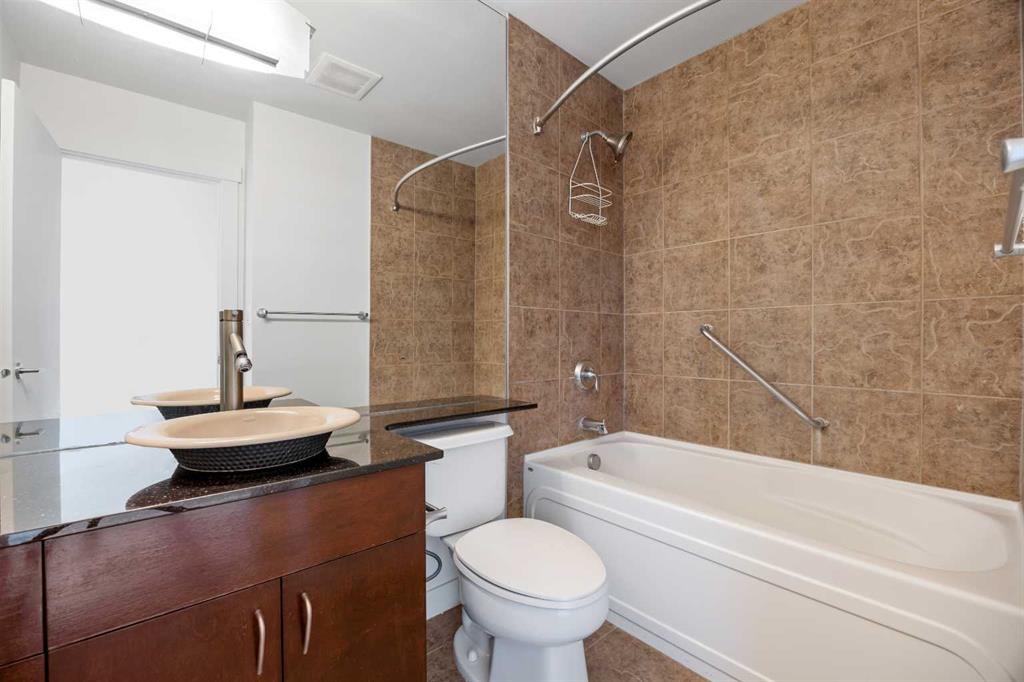 With 10-foot ceilings throughout, the entire unit feels open, bright, and welcoming. The Spacious Living and Dining Area flows seamlessly into a Kitchen finished with granite countertops and a breakfast bar. A Sunny South-Facing Balcony extends from the Living Room, bringing in natural light and outdoor access.