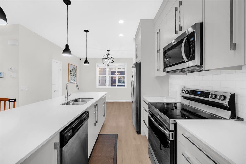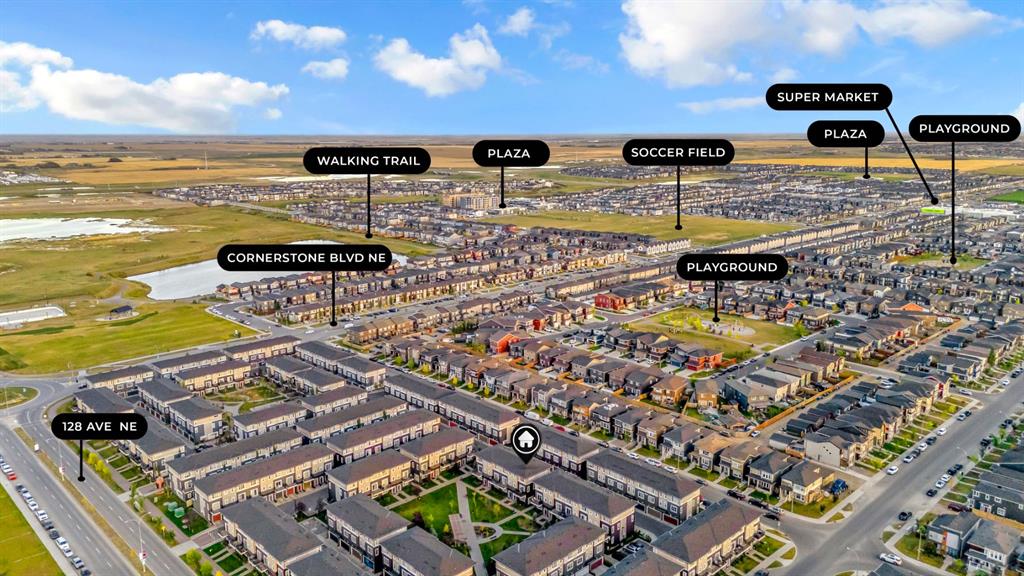 OPEN HOUSE SUNDAY SEP 28, 12pm - 3pm | Welcome to this beautiful CORNER END-UNIT townhome in the vibrant and fast-growing community of Cornerstone, perfectly positioned to enjoy full-day sunshine and directly facing a large park and green space. This spacious 3-level home offers a thoughtful layout with 4 bedrooms, 2.5 bathrooms, and a heated double attached garage. The entry level features a versatile bedroom that can serve as a guest room, office, or flex space, with direct access to the heated garage to keep your vehicles warm during winter. The open-concept second level is designed for both everyday living and entertaining, showcasing a bright and modern kitchen with full-height white cabinetry, quartz countertops, stainless steel appliances, a pantry for extra storage, a dining area, a cozy reading nook, and a large living room that flows seamlessly onto a private balcony overlooking the courtyard—perfect for summer BBQs and relaxing evenings. A convenient 2-piece bathroom completes this level. Upstairs, the spacious primary suite features a walk-in closet and ensuite with floor-to-ceiling tiled shower for a sleek, low-maintenance finish, while two additional bedrooms share a 4-piece bathroom. Laundry is thoughtfully located on the upper floor for added convenience. Large windows throughout the home create a bright and inviting atmosphere, while the location offers easy access to parks, walking paths, and family-friendly green spaces just steps from your front door. Cornerstone is one of Calgary’s fastest-growing communities, with new schools opening in the next two years and potentially a Gurdwara just 3 minutes away, along with convenient access to Stoney Trail, Deerfoot Trail, Calgary International Airport, and CrossIron Mills Mall. Combining comfort, style, and location, this home is the perfect choice for families or anyone seeking a spacious property in a thriving community—schedule your private showing today before it’s gone!
