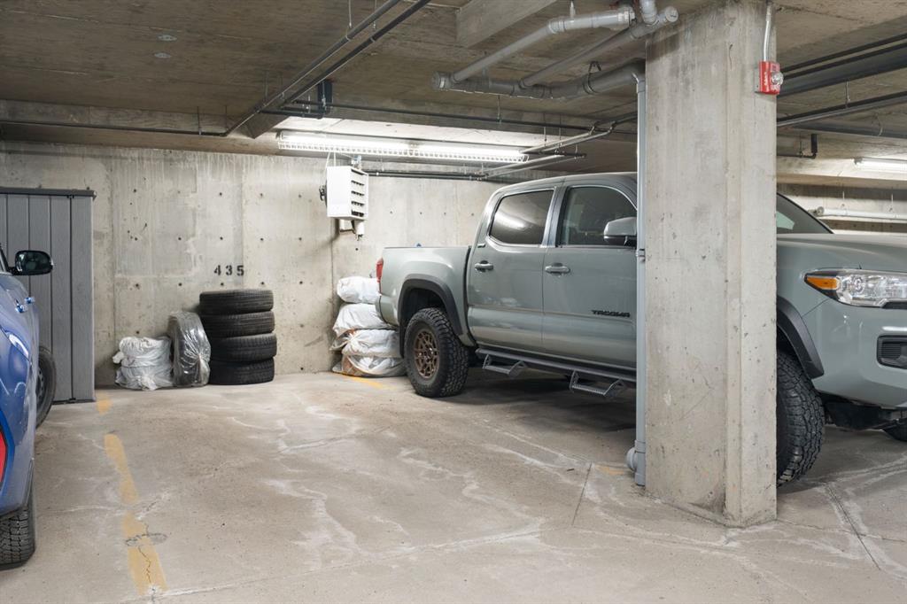 Welcome home to this perfectly situated, bight and sunny, east facing, two bedroom, two bathroom, corner unit on the quiet side of the complex! This one also has a secure, heated, titled underground parking stall! You won't want to miss this one... the foyer (big enough to have in suite storage and/or a home office space) welcomes you home at the end of the day. Step through into this large, open, living space with treed, peaceful, east facing views. The kitchen, with breakfast bar, is the perfect spot for prepping dinner with friends, or hanging out with loved ones on a lazy Sunday morning. There's room for a dining table too, if you're wanting something a bit more formal. The layout is amazing, with the two bedrooms on either side of the floorplan. The generous primary bedroom has a walkthrough closet and 3pc ensuite. There's a second full bathroom and bedroom, as well. The huge, covered balcony is perfect for BBQ season, or for a lounge in the sun, whenever summer returns. Park in your titled, underground spot and walk to all this area has to offer. You're steps from the shops, restaurants, and coffee bars, a few more steps from green spaces and the neighbourhood parks! This one has been lovingly cared for and shows like new! Call your favourite realtor to schedule your showing today!