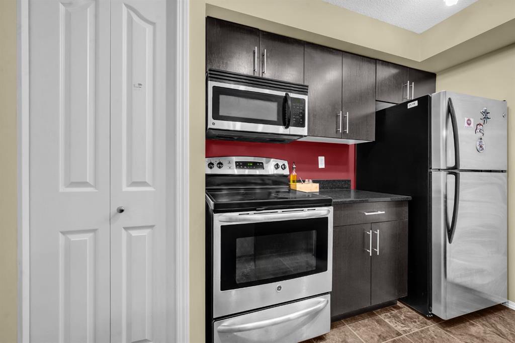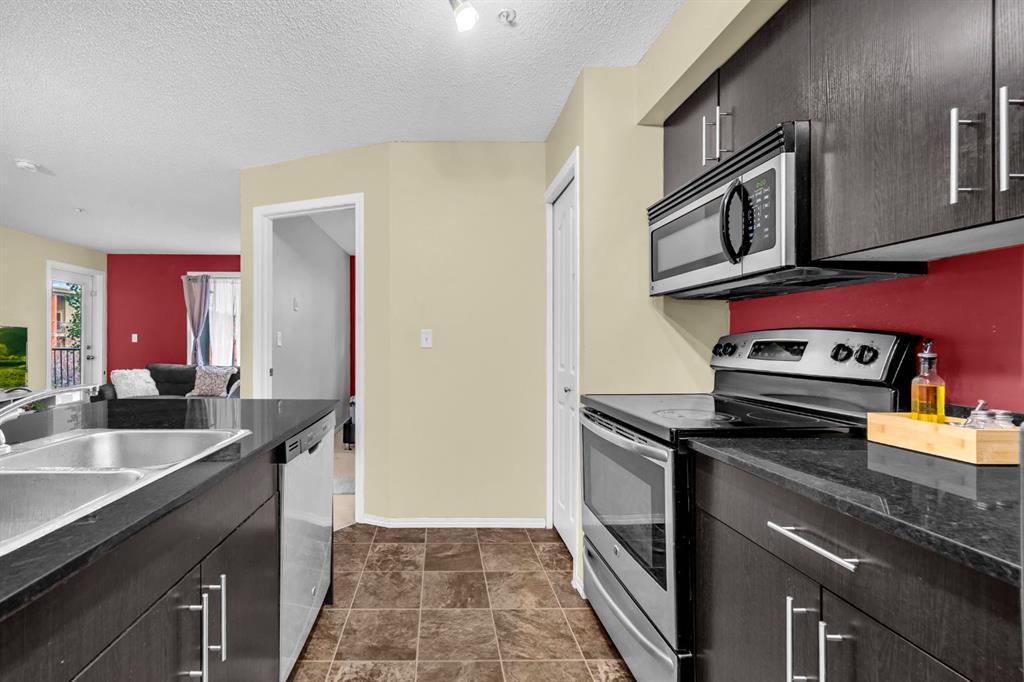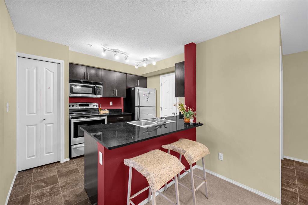 ***EXCELLENT OPPORTUNITY***Stylish and affordable! This third floor 2 bed, 1 bath condo with storage offers 703 sq. ft. of bright, open living space in the heart of Airdrie. The modern kitchen boasts granite counters, stainless steel appliances and a pantry, opening to a spacious living/dining area and your own private balcony—perfect for morning coffee or evening BBQs. The primary bedroom features a walk-through closet with access to the 4-pc bath, while the second bedroom works great for kids, guests, or a home office. In-suite laundry, heated underground parking, and extra storage add everyday convenience. All of this in a pet-friendly(upon Board approval) , well-managed complex just steps from Sobeys, Starbucks, Shoppers, GoodLife Fitness, Creekside Village Plaza, schools, parks, and transit. The perfect blend of comfort, lifestyle, and location—whether you’re a first-time buyer, downsizer, or investor!