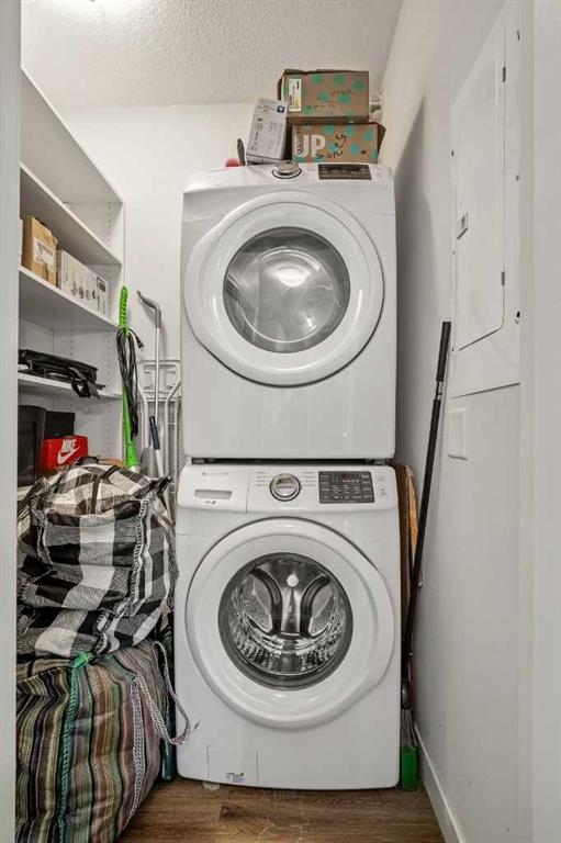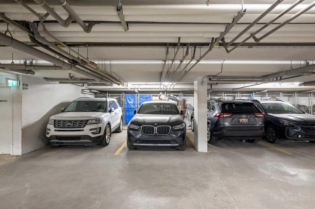 Additional features include front-load washer/dryer, air conditioning for summer comfort, and two parking stalls—one heated underground and one outdoor.