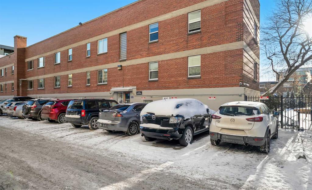 TOP FLOOR UNIT • 2 BEDROOM/DEN • CONDO FEES INCLUDE ALL UTILITIES, INCLUDING ELECTRICITY! • This charming top-floor, front-facing unit is located in the iconic Athlone, Mission’s first luxury apartment complex built in 1940. It beautifully blends vintage character with modern updates. Featured in the Calgary Historical Walking Tour guidebook, the building showcases preserved Art Modern details, such as blonde wood handrails, classic glass globe lighting, nickel radiators, and stunning archways. Inside, the functional layout features oak hardwood flooring throughout, a spacious, modern kitchen with ample cabinetry, laminate countertops, a center island with a large sink, and stainless steel appliances. The kitchen opens into a bright living room that overlooks the grand courtyard. The large bedroom is filled with natural light, while the updated four-piece bathroom boasts clean, classic subway tile and period charm. Additionally, there is a second bedroom or den with convenient barn door access. A dedicated storage room includes hook-ups for in-suite laundry, and the unit comes with assigned parking and bike storage. Located in the heart of vibrant Mission, you are just steps away from the Elbow River pathways, 4th Street shopping and restaurants, Repsol Centre, festivals, nightlife, and only minutes from downtown. The building is pet-friendly (with board approval) and well-managed, offering exceptional value in one of Calgary’s most walkable and desirable communities. Don’t miss this rare chance to own a piece of history—book your showing today and be sure to check out the 3D virtual tour.