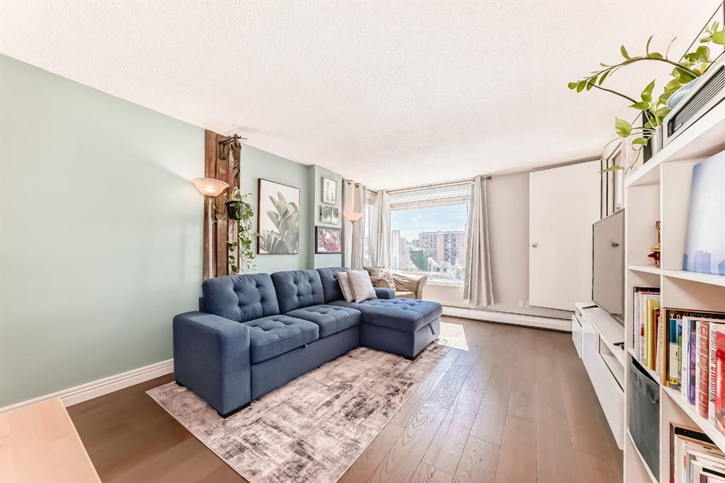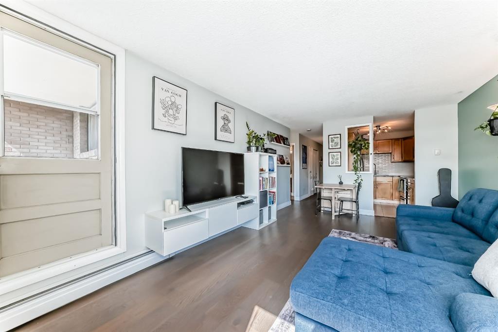 Welcome to this bright and inviting 1-bedroom, 1-bathroom condo offering 602 sq ft of well-designed living space in one of Calgary’s most vibrant inner-city communities. Step inside to find an updated kitchen with maple cabinetry, stainless steel appliances, and a modern tile backsplash. The spacious living room features large windows that flood the space with natural light, creating a warm and welcoming atmosphere. From here, step out onto your private balcony- the perfect place to relax with your morning coffee or enjoy evening city views. The bedroom is generously sized and offers ample closet space, while the 4-piece bathroom is clean and functional. An in-suite storage/laundry area adds everyday convenience, complemented by an assigned storage locker and parking stall for added value. The building also provides additional coin-operated laundry facilities. Located in the heart of the Beltline, this condo places you just steps from some of Calgary’s best dining, shopping, and entertainment. Explore the lively energy of 17th Avenue, unwind in nearby Central Memorial Park, or take advantage of easy transit connections and bike paths for a quick commute downtown. With coffee shops, grocery stores, gyms, and boutique shopping right at your doorstep, this is urban living at its finest. Whether you’re a first-time buyer, investor, or simply looking to enjoy the walkable Beltline lifestyle, this condo offers unbeatable value in a prime location.