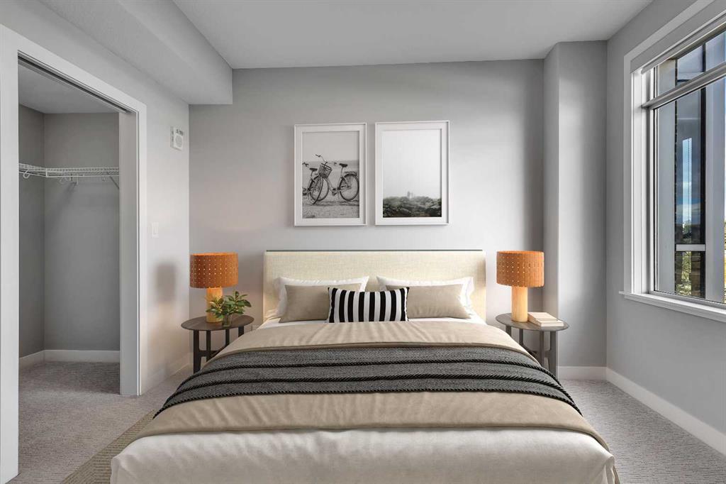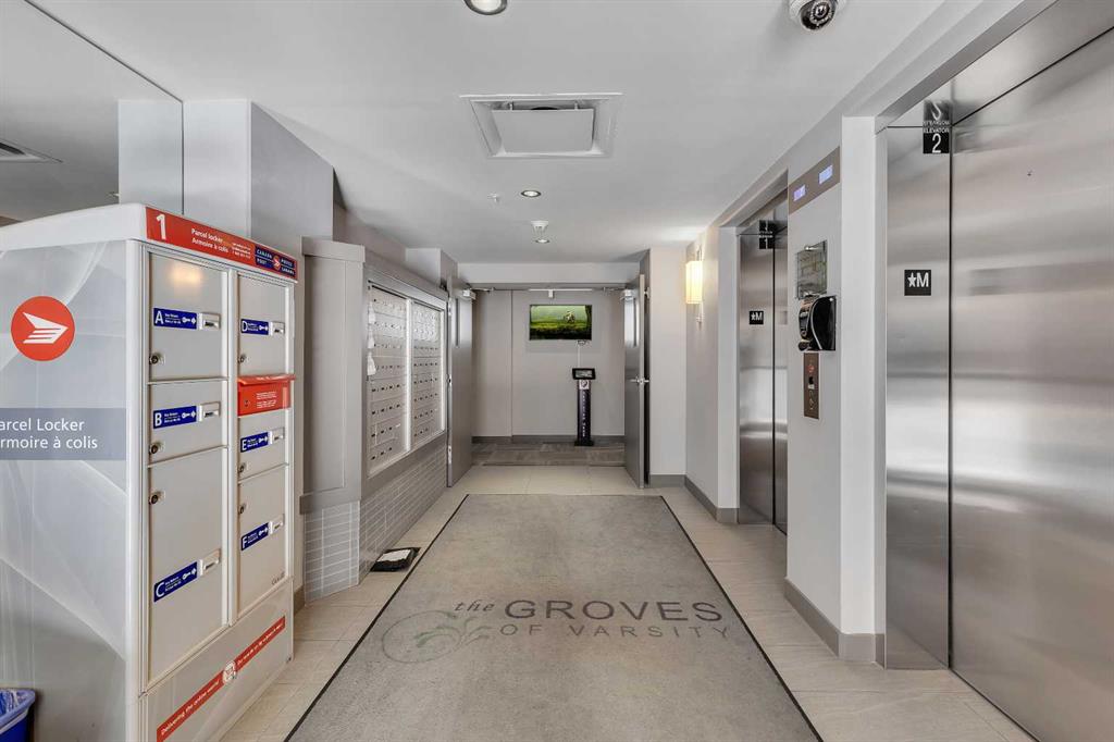 >>> OPEN HOUSE SUNDAY OCTOBER 26TH 2PM-4PM <<< Immaculate CORNER UNIT in The Groves of Varsity! As soon as you enter the unit, you will notice the bright and open floor plan including the spacious living and dining areas opening up to the modern kitchen which features granite countertops, ceiling height maple cabinetry, a large detached island, and stainless steel appliances. Additional living space includes a den/office space with huge windows. The primary bedroom includes a large walk through closet and a luxurious ensuite with double sinks. The second bedroom is ideal for guests and an additional den/office space. A second full bathroom, in-suite laundry, and ample storage complete the home. Additional features & updates include fresh paint, new engineered hardwood floors, new carpets, a titled underground parking stall, and a secured storage locker. Enjoy exceptional building amenities including a gym, steam room, owners lounge, rooftop terrace with mountain views and BBQ area, quiet courtyard, and tons of visitor parking. Prime location includes on site professional plaza(doctor’s office, pharmacy, and coffee shop) and across from Dalhousie LRT, Dalhousie Station Shopping Centre, and close to parks and schools. A rare opportunity to own a move in ready, upgraded corner unit in one of Calgary’s most desirable communities! Call your agent for a private showing today!