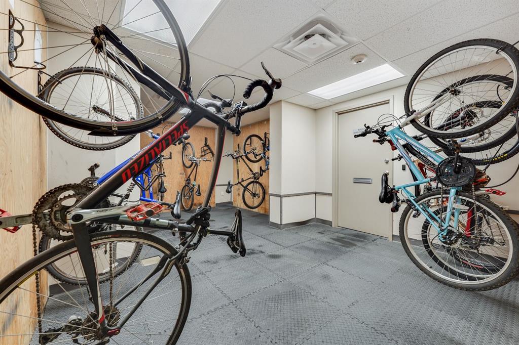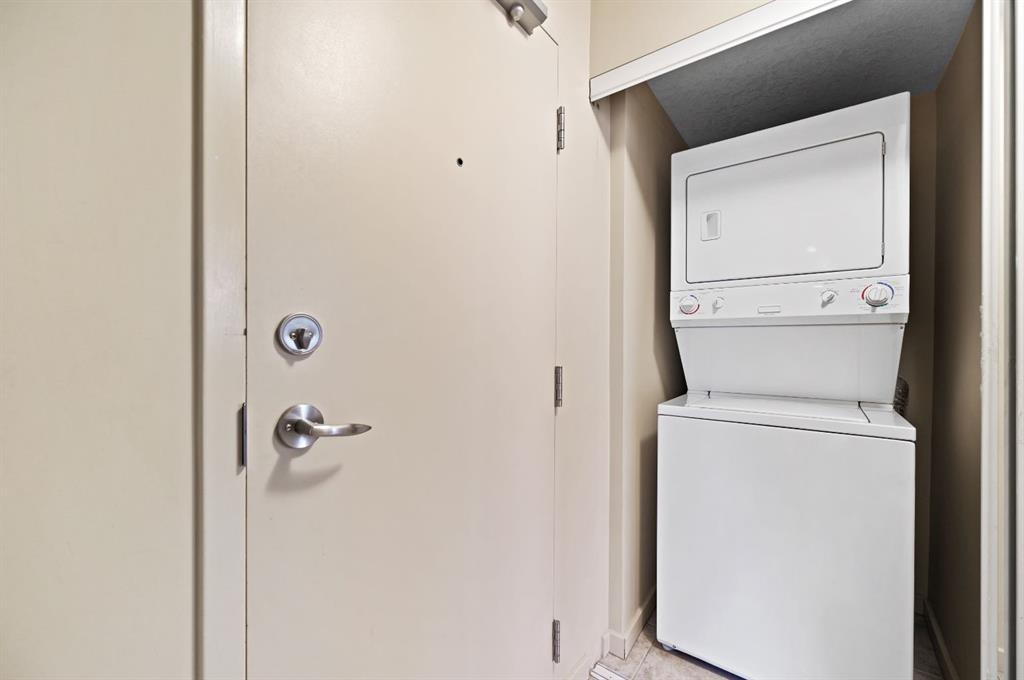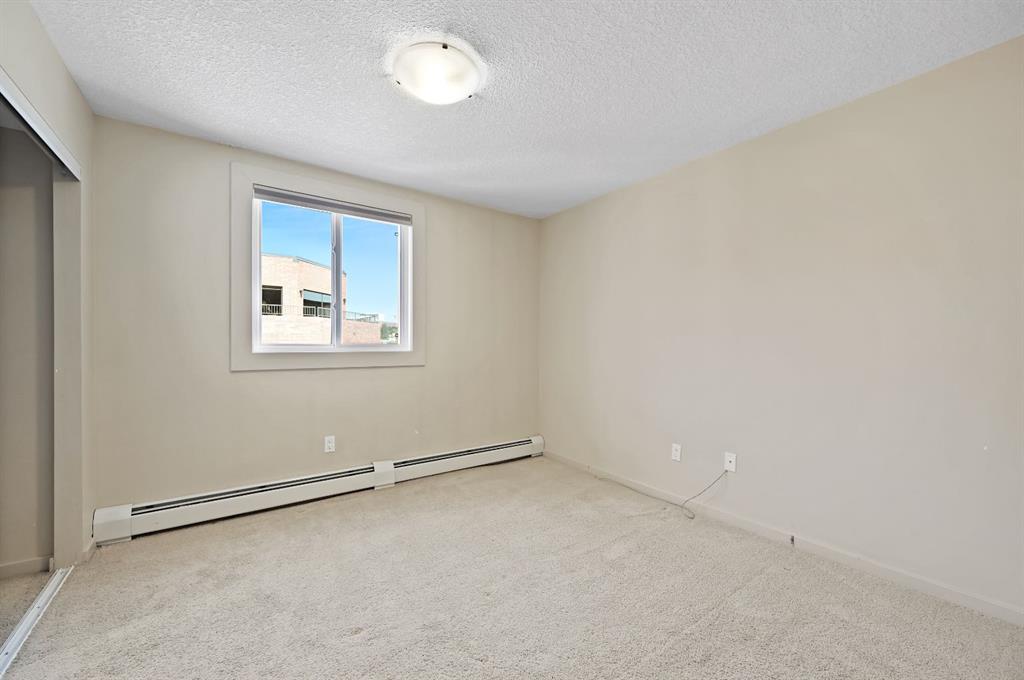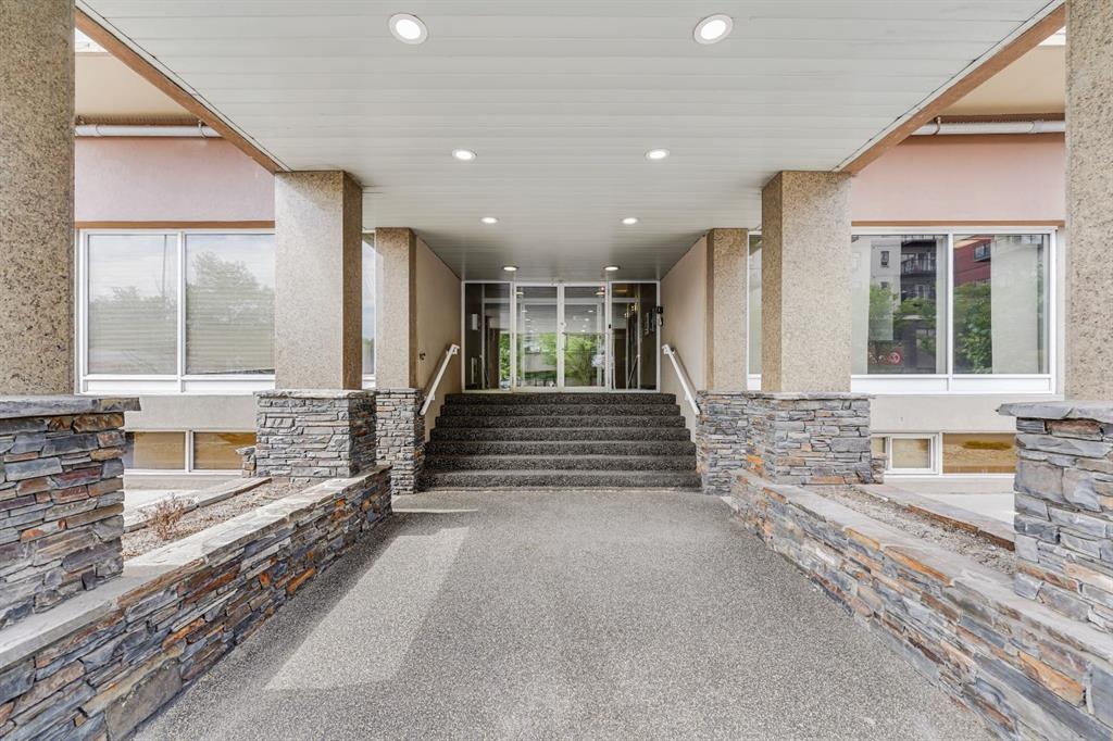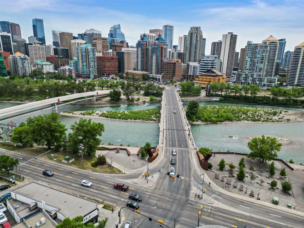 This corner END unit showcases fantastic CITY SKYLINE VIEWS and must be seen. Very close to the downtown core in the heart of Hillhurst, and walking distance to the pubs, restaurants, and shops of Kensington. Stroll to the walking paths along the Bow River, beautiful Riley Park, and the Sunnyside LRT station and even up the hill to SAIT! In a concrete building, this 1-bedroom condo features a kitchen perfect for entertaining with eating bar, stainless steel appliances, granite countertops, mosaic tile backsplash, and darker stained cabinetry, a 5-piece bath with jetted tub and granite counters, cozy living room, IN-SUITE laundry, parking stall (#31) and separate private storage area (#31). The bedroom is separated from the living room and eating area for privacy and quiet. The Vue building offers a fully equipped exercise room with newer equipment and bike storage! The very low condo fee ($436/month) includes heat and water and sewer. Experience the great location, style and convenience of this condo and the Kensington area. Priced to sell.