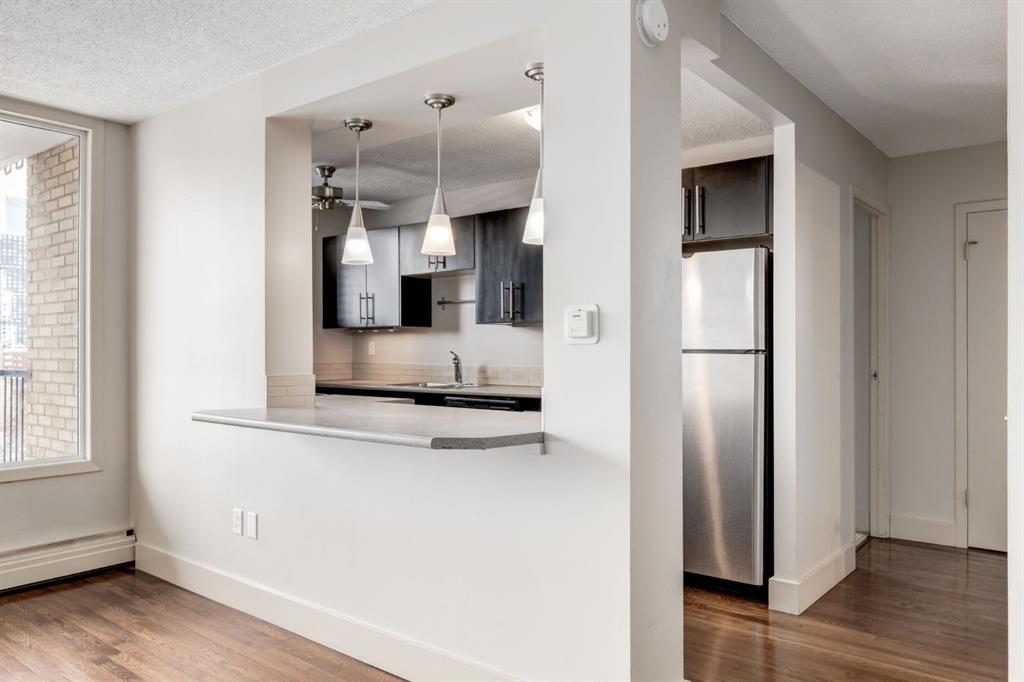 Attention first-time buyers and investors! Discover exceptional value in this stylish 2-bedroom, 1-bathroom condo at Urban Street, a modernized six-story building located in the highly sought-after community of Cliff Bungalow. Just steps from 4th Street and the Mission district, you’ll love being close to Calgary’s best restaurants, trendy cafés, boutique shopping, and scenic river pathways. This bright and inviting home offers over 750 square feet of well-designed living space with impressive downtown views. The open layout features espresso-stained oak hardwood floors, a sleek galley kitchen with stainless steel appliances and a breakfast bar, plus in-suite laundry for added convenience. Enjoy relaxing on your private balcony with your morning coffee or evening drink while taking in the city skyline. With concrete construction, titled underground parking, and a fantastic Walk Score of 95, this home offers comfort, security, and unbeatable urban convenience. Perfect for anyone looking to invest, downsize, or get into the market for the first time. Book your private showing today and start enjoying the downtown lifestyle you’ve been dreaming of!